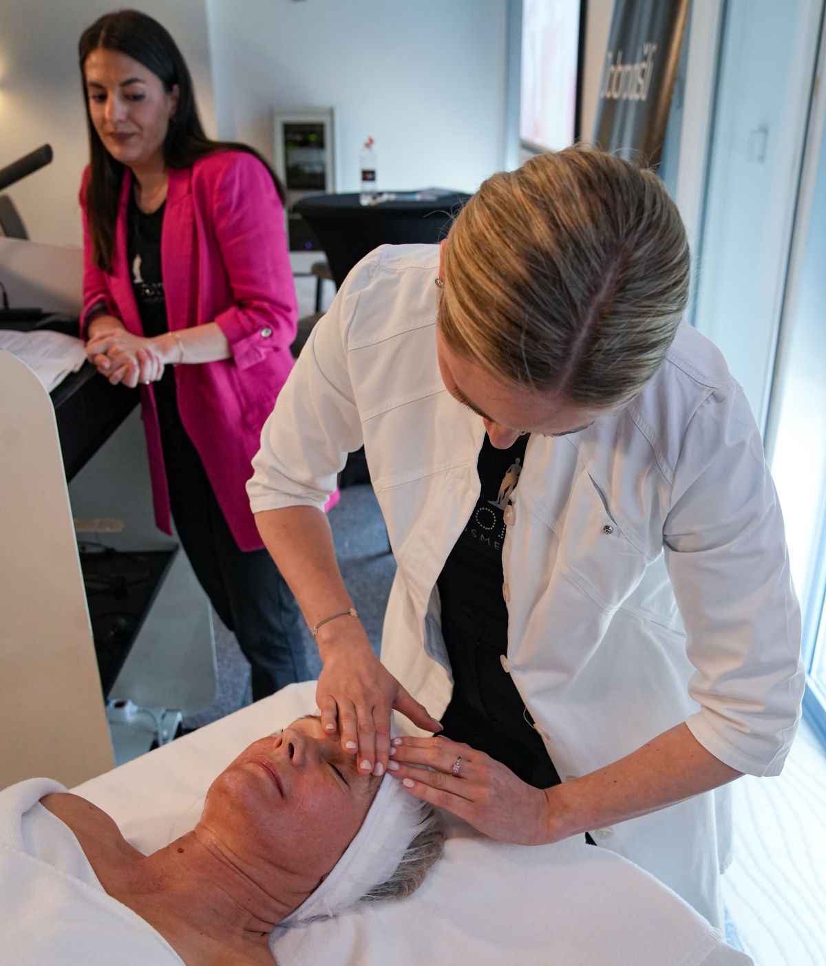 Katja Bercko iz Kozmetike Afrodita je v svojem predavanju razkrivala skrivnosti lepe in mladostne kože ob izvedbi popolne nege obraza na eni izmed udeleženk Vikenda doživetij.