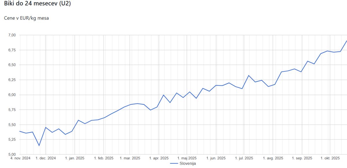 V zadnjih letih so cene govejega mesa v Sloveniji opazno zrasle. Po podatkih Statističnega urada Republike Slovenije (Surs) je bilo goveje meso avgusta 2025 približno 28 odstotkov dražje kot v enakem obdobju lani. Trend rasti cen govejega mesa je vrh doživel med letoma 2022 in 2023, ko so bile cene govedine v Evropski Uniji na zgodovinsko visoki ravni, nič pa zaenkrat ne kaže na to, da bi se stanje drastično spremenilo.