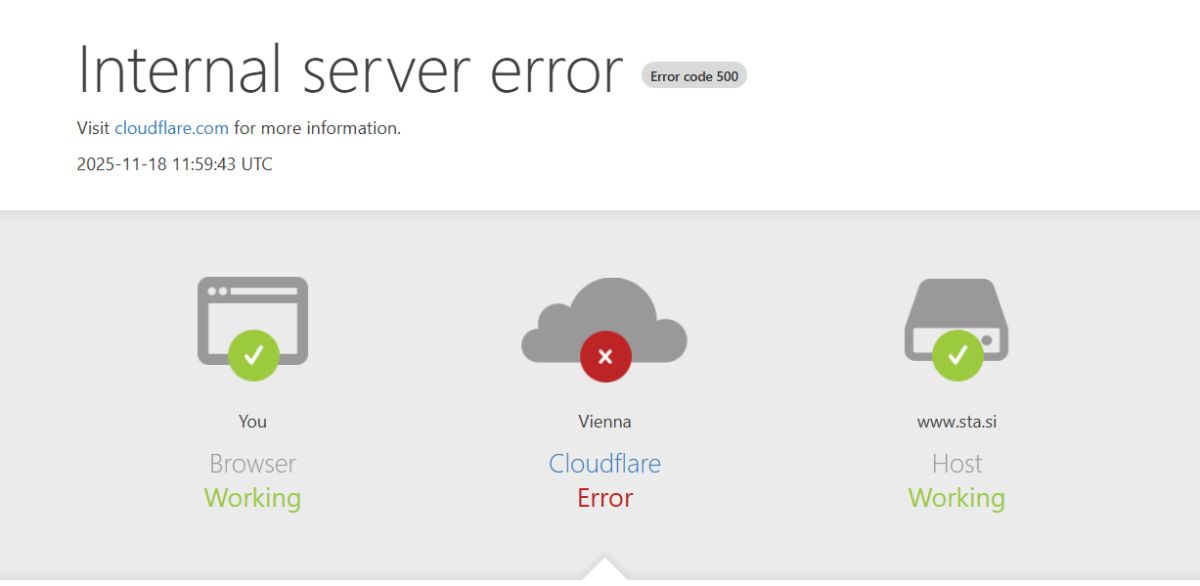 Del spleta je nedostopen zaradi težav pri Cloudflaru, ponudniku storitev, ki pospešuje nalaganje strani in jih ščiti pred napadi. Podjetje težavo preiskuje.