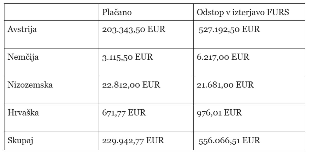 Med 1.11.2023 in 9. 12. 2025 pa smo Slovenci v tujino zaradi prekrškov nakazali skoraj 230 tisoč evrov, Furs pa je dodatno izterjal dobrih 556 tisoč evrov. V tem obdobju je krepko največ kazni bilo izplačanih Avstriji, sledijo Nizozemska, Nemčija in Hrvaška. Severnim sosedom smo tako izplačali nekaj več kot 203.000 evrov kazni, finančna uprava pa je izterjala dodatnih 527 tisoč evrov.