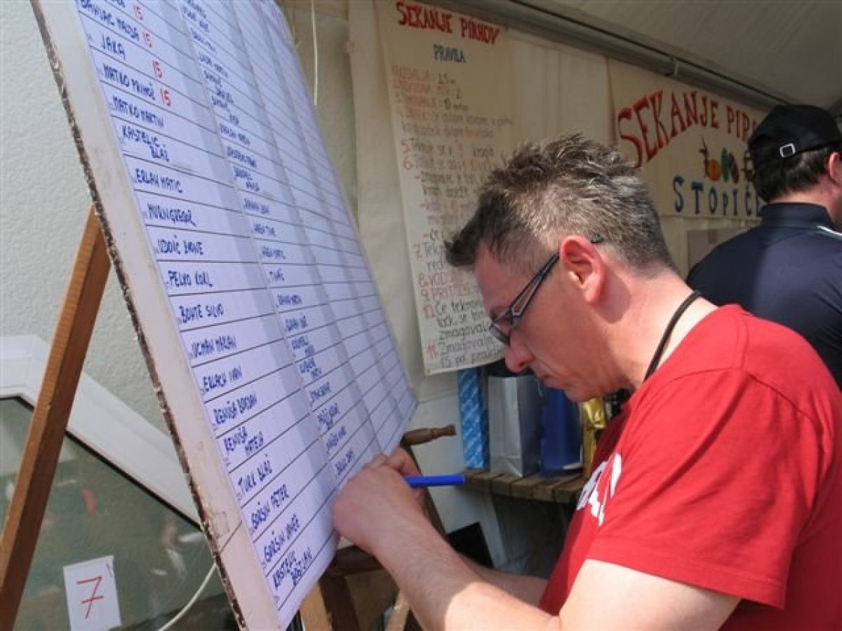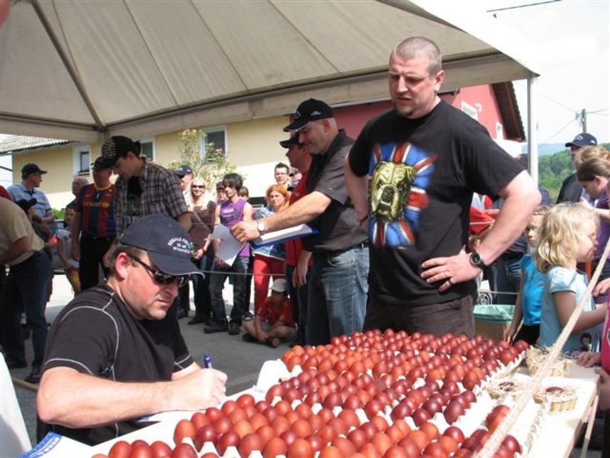 Za tradicionalno, že 20. tekmovanje v sekanju pirhov, so stopiški gasilci danes pripravili 300 pirhov. Pred gasilskim domom v Stopičah ta čas boj za zmagovalca, ki se mu obetajo tudi lepe nagrade, še poteka, k sodelovanju pa se je še mogoče prijaviti. Do 15.30 ure se je v sekanju pomerilo že preko 70 tekmovalcev, organizatorji pa pričakujejo, da se jih bo do konca tekmovanja zvrstilo preko sto.