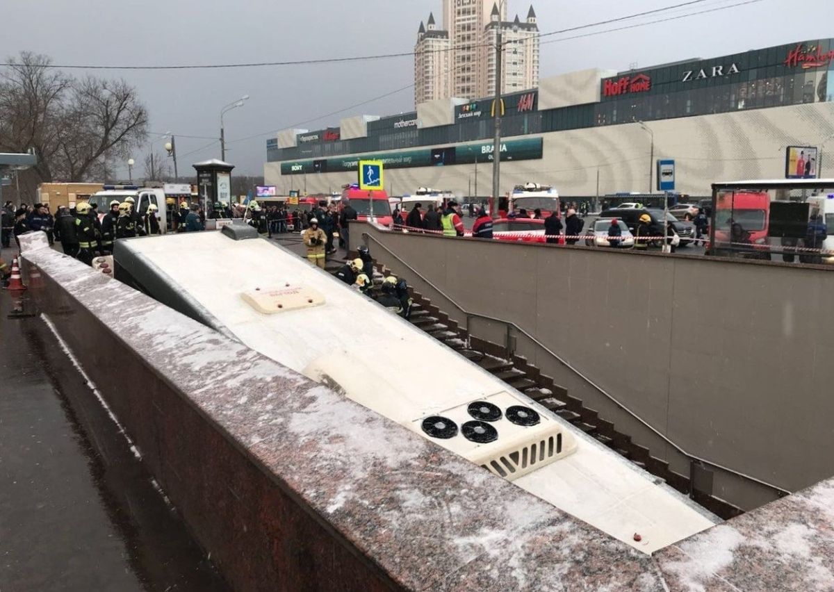 Na posnetkih nadzornih kamer je bilo videti, kako so se ljudje razbežali pred avtobusom, ki je peljal po širokih stopnicah na vhodu za postajo podzemne železnice Slavjanski Bulvar na zahodu prestolnice. Ustavil se je, ko se je zaletel v strop podhoda.