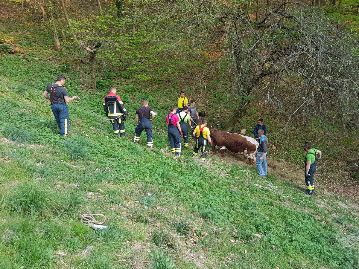 Za operativne člane Prostovoljnega gasilskega društva (PGD) Leskovec so letošnji velikonočni prazniki minili nekoliko drugače kot običajno. V Velikem Okiču, kraju, za katerega zaradi strmih pobočij pogovorno rečejo, da še koza potrebuje palico za oporo, so iz 200-metrske globeli reševali 700 kilogramov težko kravo Šeko. Ta je strgala verigo, s katero je bila pripeta v hlevu, pobegnila in padla v prepad.