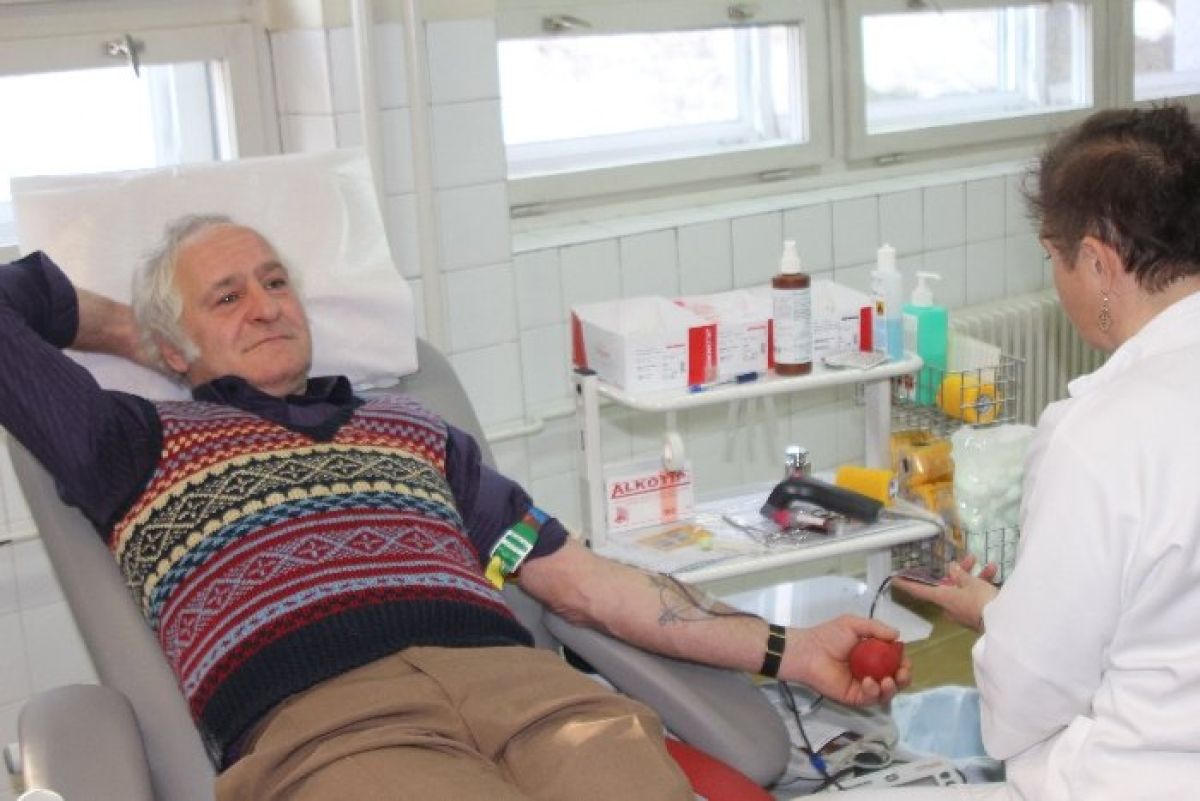 Na Centru za transfuzijsko dejavnost v novomeški bolnišnici sta to jutro redna krvodajalca Ivan Pavc z Dolža in Anton Bukovec iz Petan nad Birčno vasjo prišla že na stoti odvzem krvi.