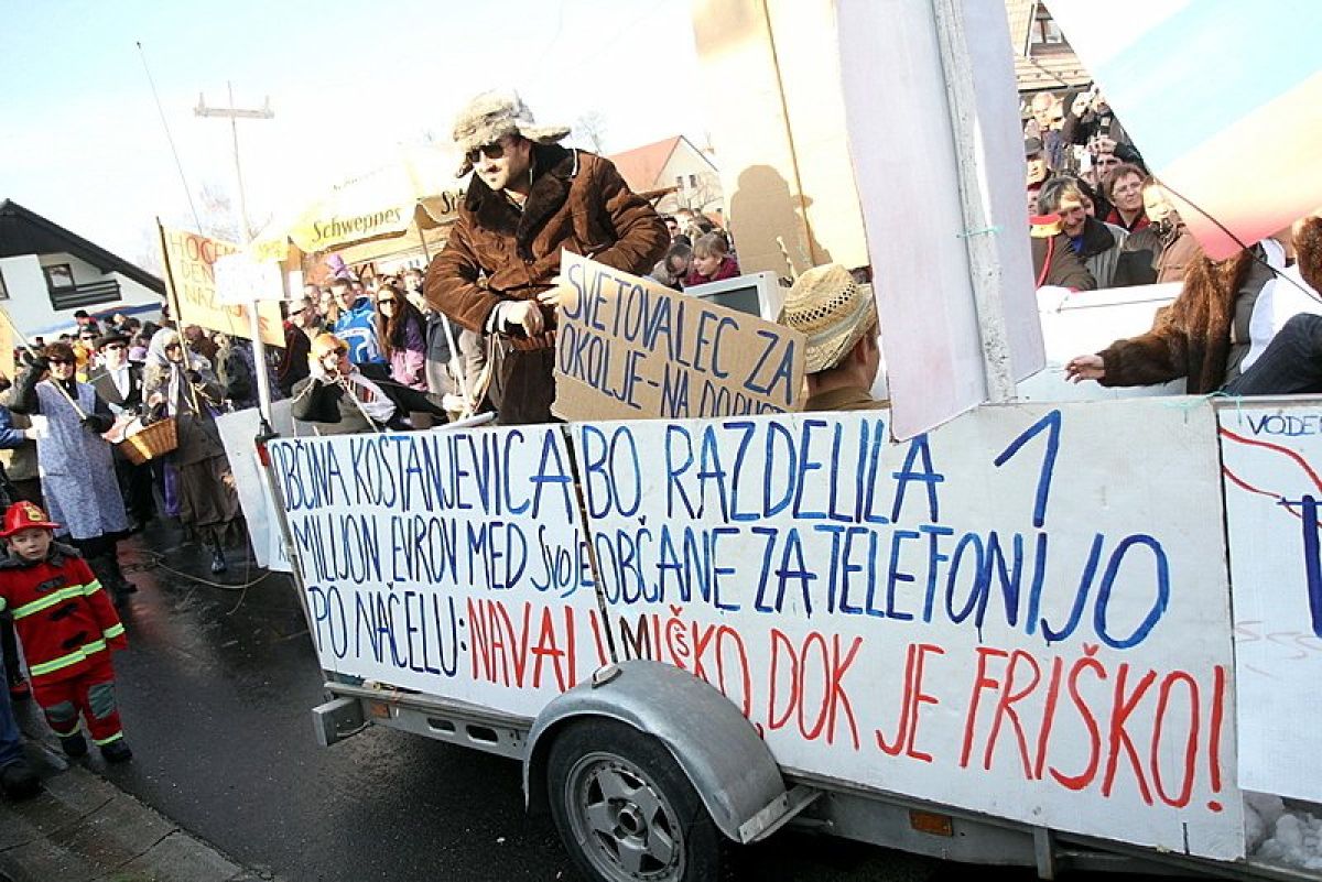 Kostanjeviška Šelmarija je z osrednjo povorko včeraj v dolenjske Benetke spet privabila množico obiskovalcev. Pa maškar seveda tudi. Te so se ponorčevale iz gradnje kostanjeviškega kulturnega doma in vračanja denarja iz vlaganj v telefonsko omrežje, bolj grenak je bil humor na račun izkoriščanih delavcev v gradbeništvu, Kostanjevico so obiskali Simpsonovi itd. Nasmejali se boste marsikateri fotografiji Andreja Matiča. Smeh je pol zdravja, vzemite si čas:
