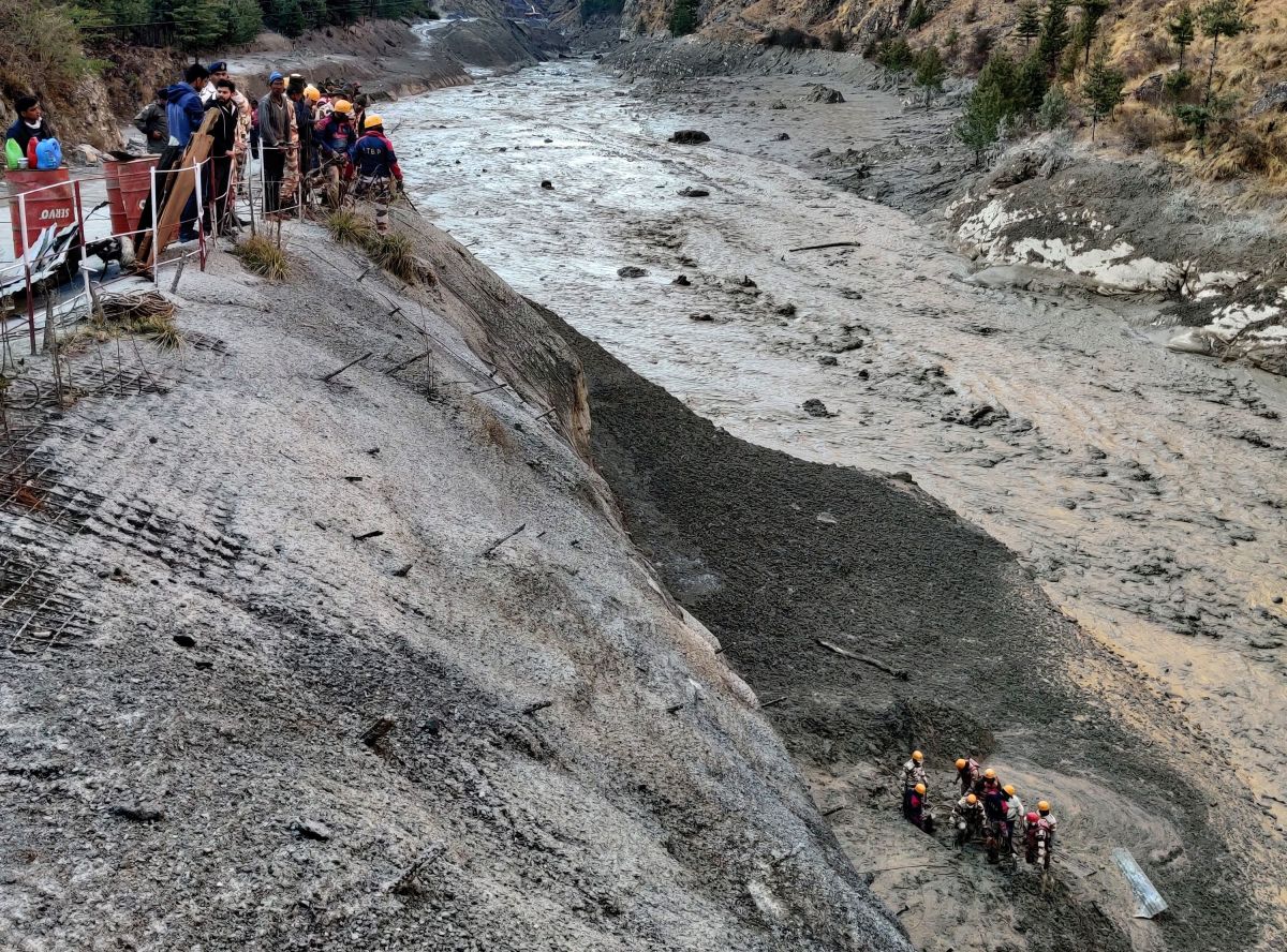 Reševalci ob vznožju himalajske gore Nanda Devi v indijski zvezni državi Uttarakhand še vedno iščejo pogrešane osebe, ki jih je v nedeljo odnesel val vode, skalovja in prahu. Vse skupaj se je začelo na 2000 metrih nadmorske višine, kjer se je odlomil del ledenika, ta pa je nato povzročil obsežne poplave nižje v gorski dolini.