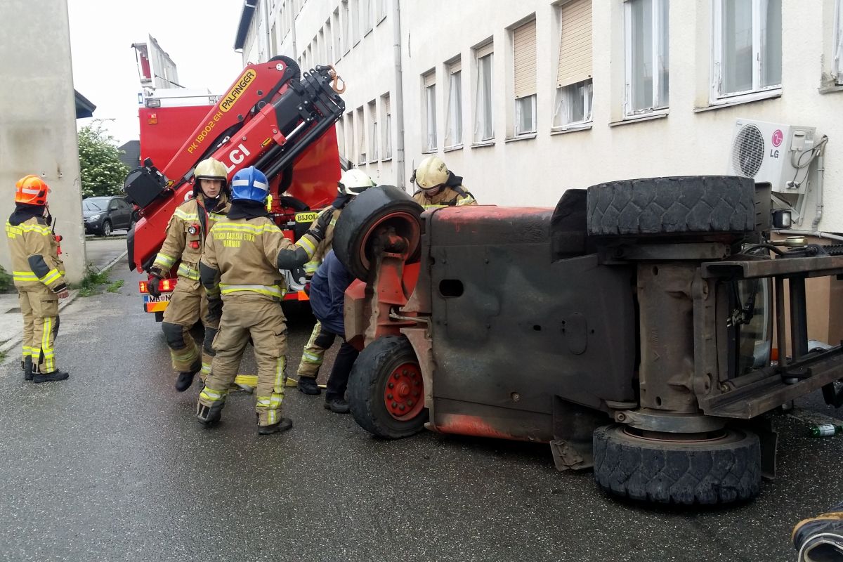 Ob 7.43 se je na Zagrebški cesti v Mariboru v podjetju AC Metalna pri opravljanju del na delavca prevrnil viličar in mu poškodoval nogo.