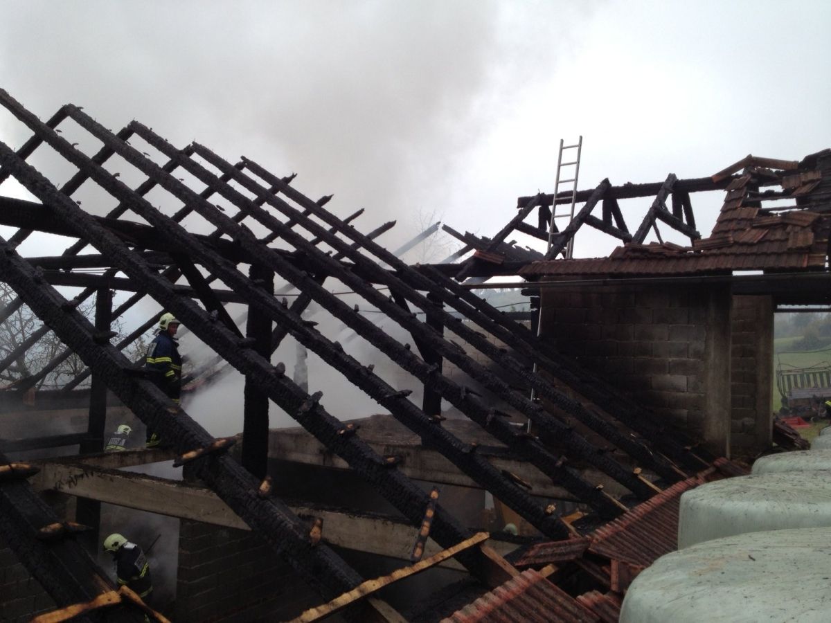 FOTO: Zgorelo ostrešje, seno, nakladalna prikolica