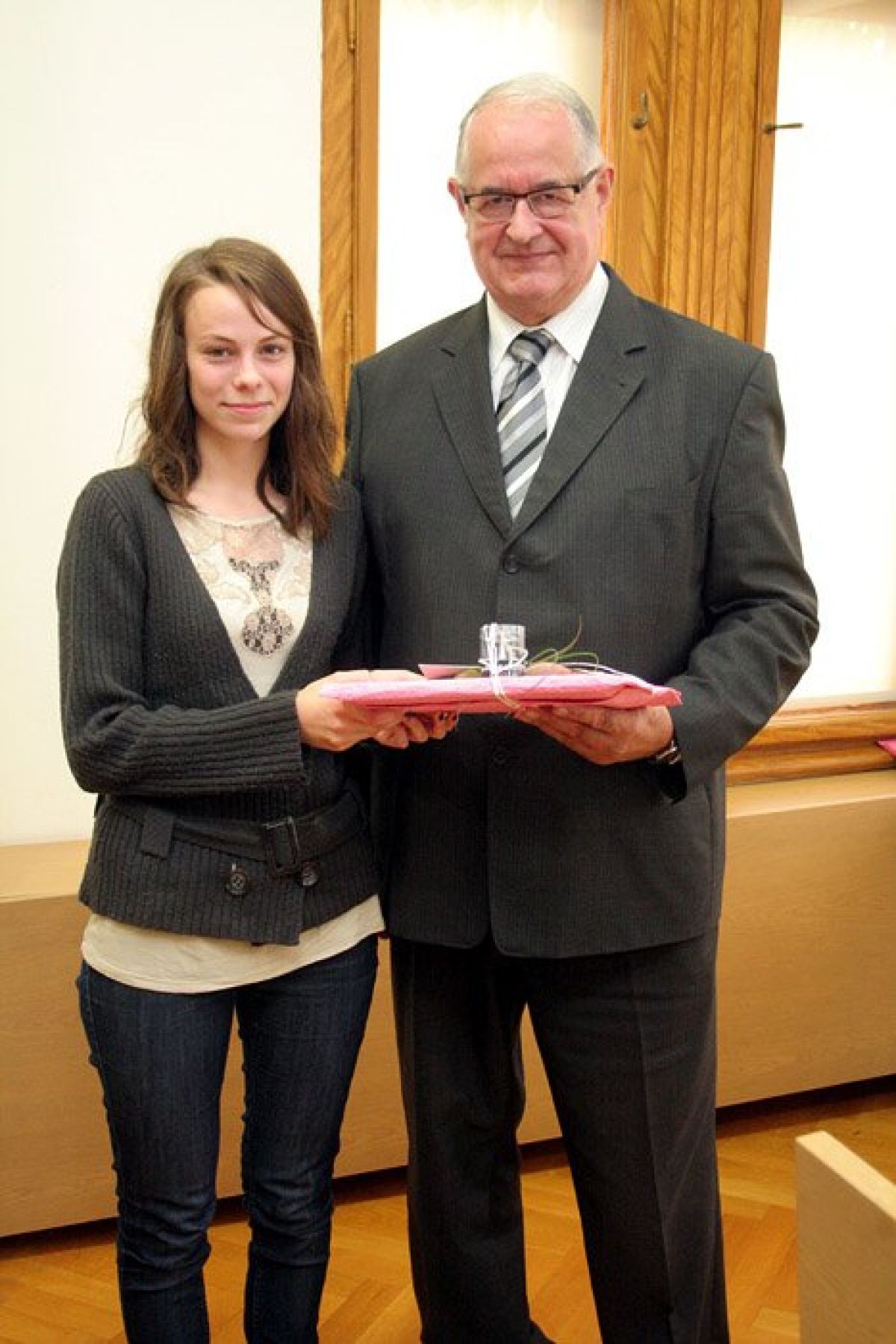 Sprejem in obdaritev maturantov je popestril izvrsten nastop mlade violinistke Laure Bartelj, učenke osmega razreda Glasbene šole Marjana Kozine, ki jo je na klavirju spremljala profesorica Jožica Prus.