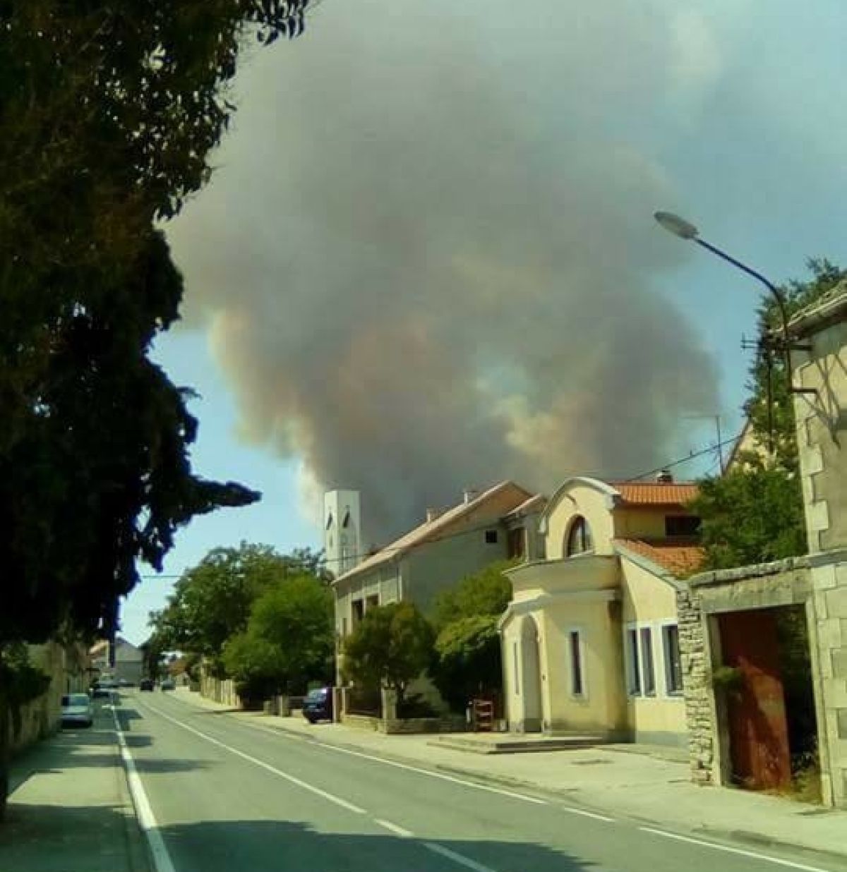 Ta je na neki točki prečil cesto Kistanje-Knin, na severnem delu naselja, v zaselku Štrbac, pa je ogenj dosegel stanovanjske hiše. Kot poroča hrvaški Jutarnji list, so gasilci uspeli zaščititi vse objekte in ogenj pravočasno ustaviti.