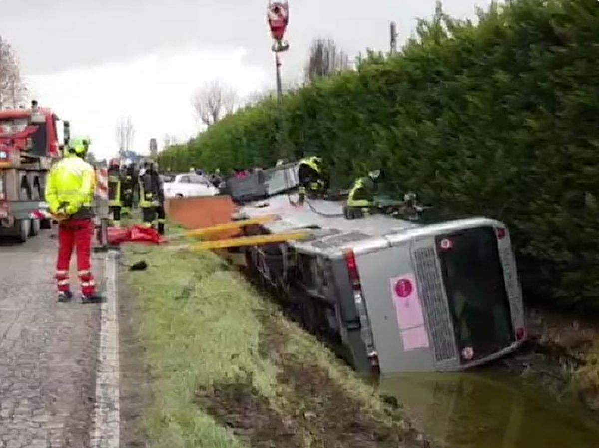 Na severu Italije je danes s ceste zapeljal šolski avtobus in se prevrnil. V nesreči so bili huje poškodovani štirje otroci in voznik, 25 otrok pa je bilo lažje poškodovanih.