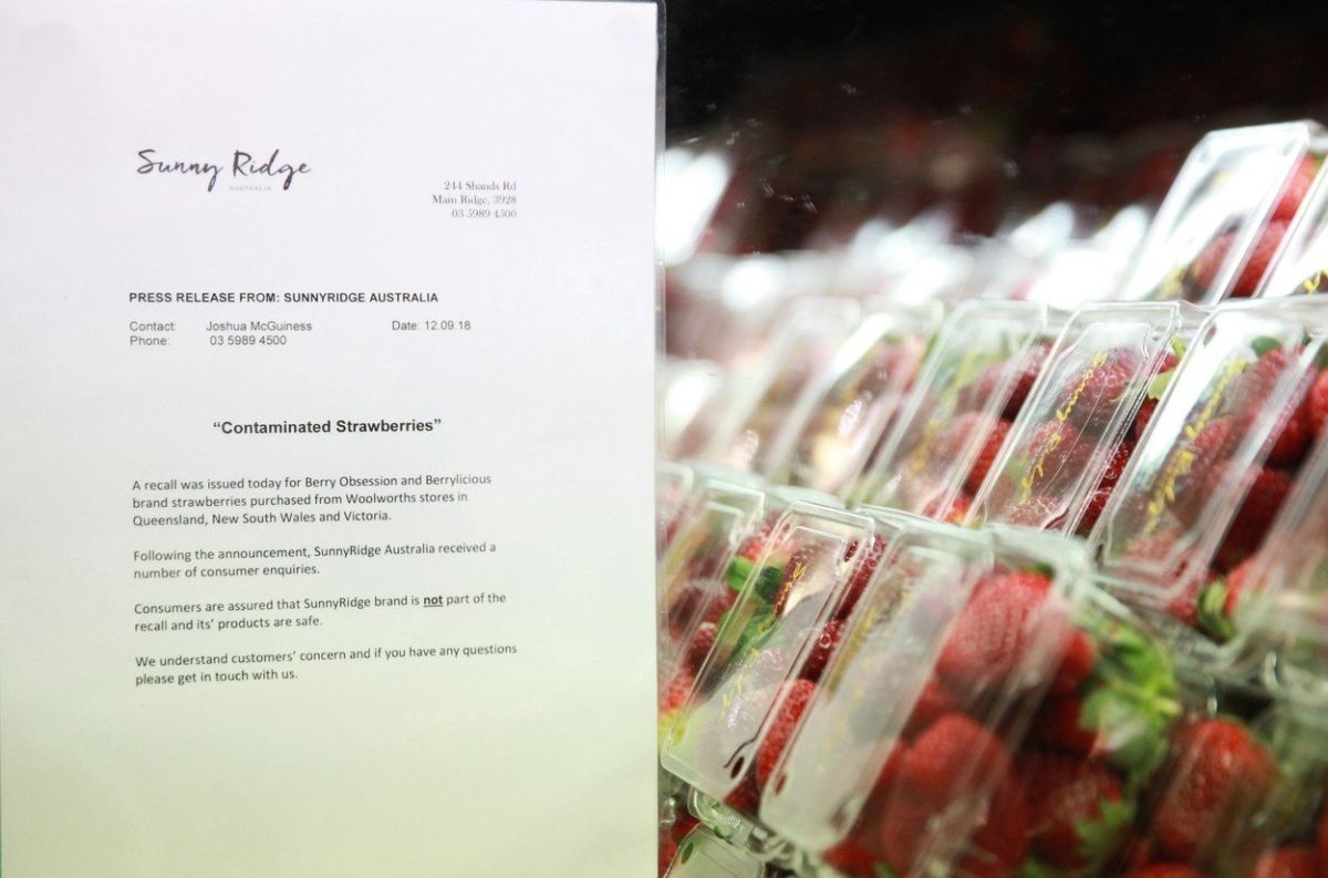 Prva poročila o iglah v jagodah so se pojavila v Queenslandu. Enega moškega so morali hospitalizirati. Pridelovalci so morali zavreči pridelek, prodajalci so jagode umaknili s polic.