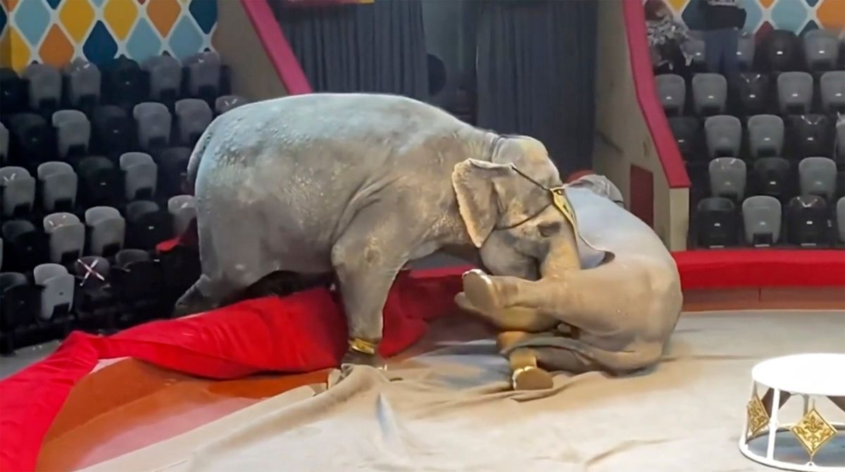Starši in otroci so kričali in bežali iz cirkuške dvorane v ruskem mestu Kazan, medtem ko so cirkuški delvci poskušali ukrotiti podivjani indijski slonici, ki sta se stepli med predstavo.