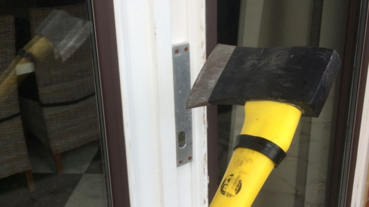 Odprl mu je 59-letni najemnik, starejši pa ga je z roko takoj udaril v obraz. Najemnik je zato sunkovito zaprl vrata, a jih je starejši s silo telesa vrgel s tečajev. Najemnik je zato, da bi mu preprečil vstop, z notranje strani tiščal vrata nazaj, starejši pa je z roko segel med vrata in podboj in z manjšo sekiro, ki jo je imel v roki zamahoval proti najemniku. K sreči ga ni zadel, najemnik pa je uspel nato sekiro prijeti in mu jo iztrgati iz rok. Policisti, ki so intervenirali na kraju so pri starejšemu ob prijetju našli še bajonet in štartno pištolo. Vse predmete so mu seveda zasegli.