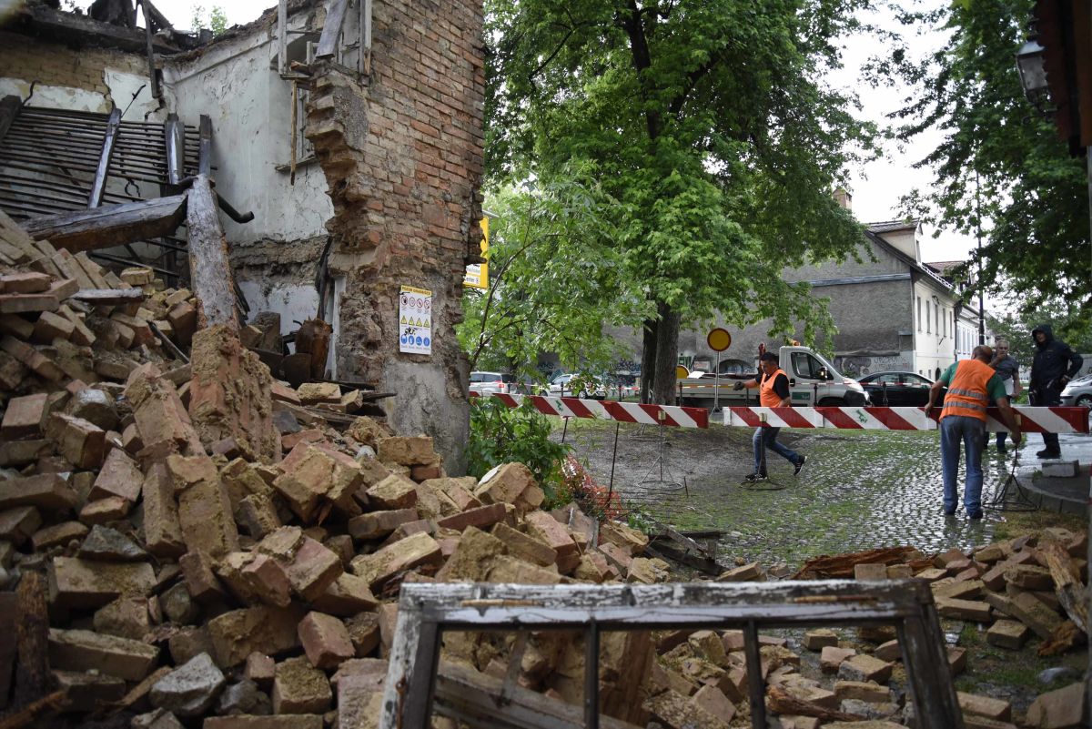 Na Gornjem trgu v Ljubljani se je danes okoli 14.20 porušil del starejše, zapuščene hiše. Na terenu so bili policisti in gasilci, ki so zavarovali območje.