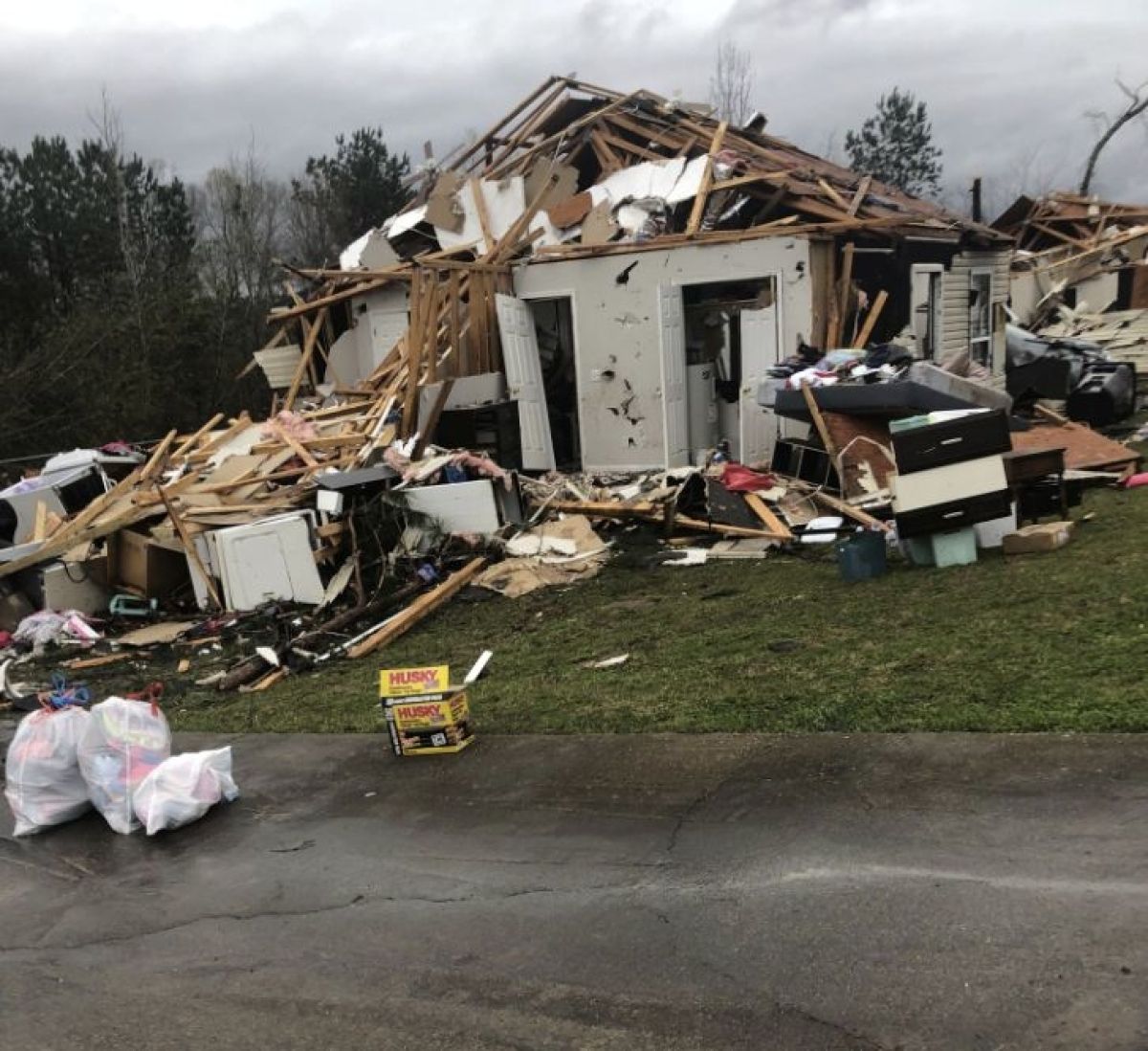 Tornado, ki je v pridrvel s hitrostjo čez 260 kilometrov na uro, je največjo razdejanje povzročil v mestu Beauregard. »Naenkrat se je stemnilo. Bilo je kot ponoči. Čeprav se sliši kot kliše, ampak tako je bilo, 'kot da pripeljal tovorni vlak',« je prihod tornada okoli 14. ure v nedeljo opisal prebivalec Beuaregarda Scott Filmmer.