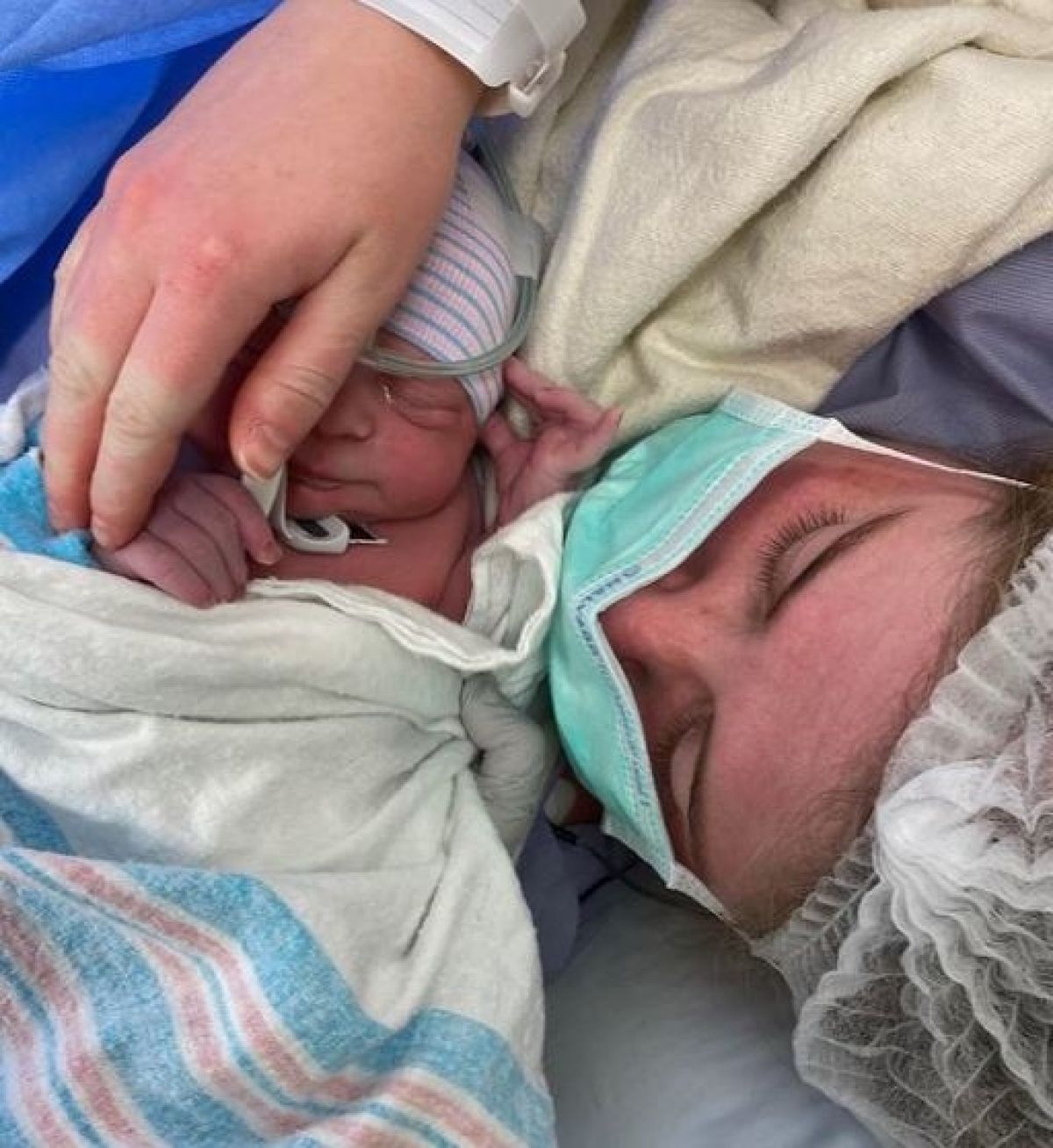 "Ta ljubki fantek bi moral priti na svet na Valentinovo. Prišel pa je že v ponedeljek, 8. februarja! Zaljubljena sva v njega," je zapisala pevka ob objavi fotografij svojega prvorojenca. "Dobrodošel na svet, Riley!" je dodala in se obenem zahvalila svojemu možu za čudovito darilo.
