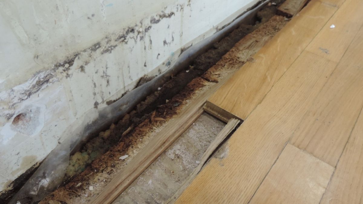 Situacijo smo si ogledali sami. Kot smo lahko videli, je parket na nekaterih mestih vidno upognjen, ponekod nabrekel. Še bolj zaskrbljujoče stanje razkriva odprtina med parketom in zidom. Ponekod je vidna plesen, posebna goba, ki je pod parketom, pa gnije. Lesene deščice parketa je ob robu mogoče odstraniti kar s prsti, pod njimi pa vonj po vlagi in plesni.