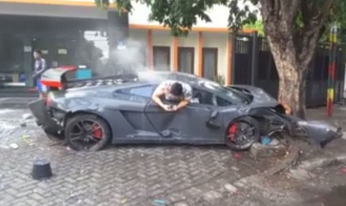 Na spletu se je znašel posnetek 24-letnega voznika, ki je uporabljal mobilni telefon tudi, ko je visel skozi okno svojega razbitega lamborghinija, čeprav je prej z njim pokosil tri ljudi.