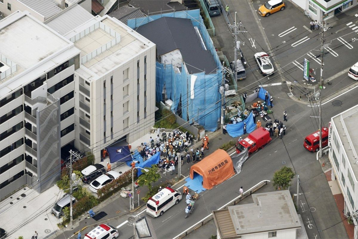 Policisti so osumljenca, ki se je zabodel v vrat, na kraju pridržali, a je pozneje umrl. Prebivalec Kawasakija, star približno 50 let, naj bi bil nezavesten, ko so ga prijeli.