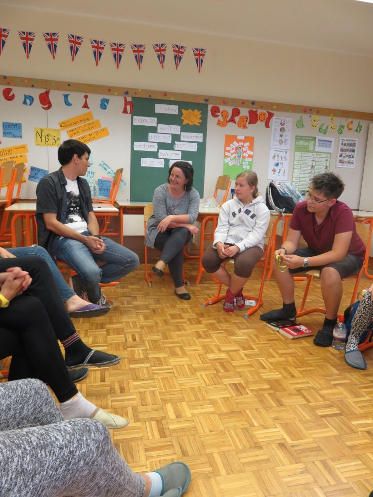 Lov na zaklad, obisk lokalne knjižnice in pogovor s skritim gostom je le nekaj aktivnosti, s katerimi sva v četrtek, 9. 6. 2016, učiteljici Barbara Kustec in Cilka Zupančič priredili 1. Večer knjige na OŠ Mokronog. Učenci in učenke 6.—9. razreda so deževno popoldne preživeli v šoli in knjižnici Mokronog, kjer so se urili v samostojnem iskanju knjig. Skriti gost, tekstopisec Matej Kocjančič, pa nas je vse očaral s svojim talentom in sproščenostjo, kar bo še dolgo odzvanjalo v naših srcih. Z njegovo pomočjo so učenci napisali iskrivo besedilo na že podano melodijo, pri čemer so se neizmerno zabavali. Pravijo, da prvega srečanja ne pozabiš nikoli, sploh pa, če si ob koncu le-tega pripraviš slastne palačinke. Vsi se strinjamo, da je bil 1. Večer knjige resnično nepozaben.