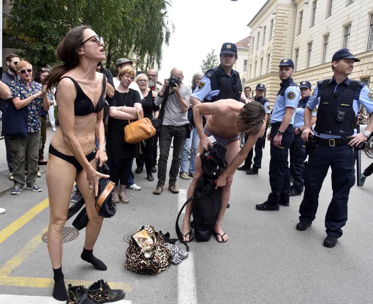 FOTO: Kulturniki na današnjem protestu odvrgli rekvizite, nekateri tudi oblačila