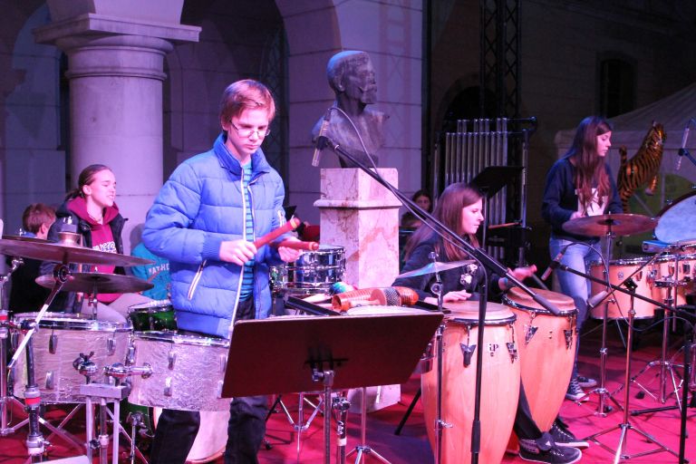 Tolkalska skupina novomeške glasbene šole Muvaruvagruva nadaljuje tradicijo in navdušuje someščane z vsakim svojim nastopom. Tokrat so mladi tolkalci svoje "orodje" postavili na oder na Glavnem trgu pred rotovžem in s silovitimi ritmi včeraj popoldne ogreli predvsem otroke, ki so pred tem pozdravili Coca-colinega dobrega moža z rdečo kapo z belim cofkom, in njihove starše.