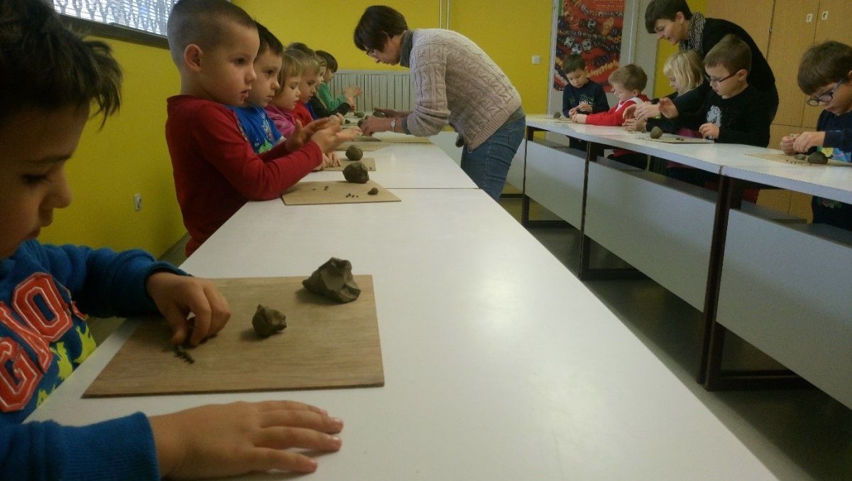 V januarju smo si ogledali občasno arheološko razstavo »Podoba ali simboli«. Otroci so v delavnici ustvarjali iz gline, izdelali so si tudi ropotuljico.
