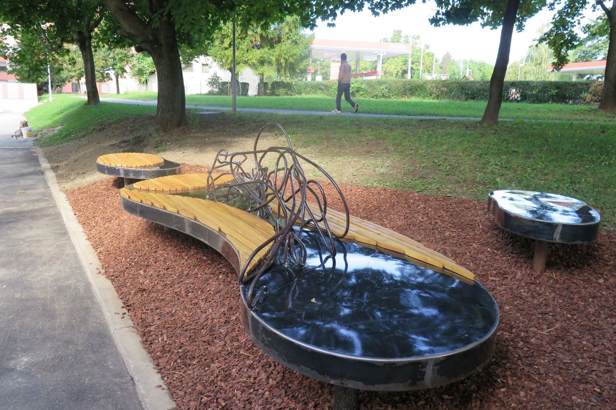 »Oblake solidarnosti, ki jo danes izredno potrebujemo, še posebej med mladimi,« je pojasnil Jurak. Za naslon je uporabil rabljeno kovinsko ogrodje iz konstrukcije mostu, ki ga je umetniško prepletel. »Mladim želim sporočiti, naj se povežejo in naj bodo trdni v svojih prepričanjih in dejanjih,« je pojasnil.