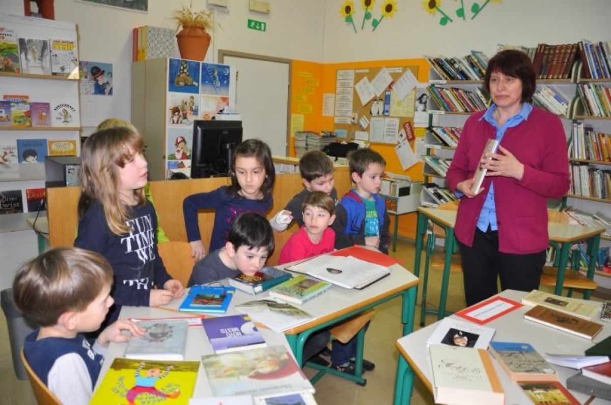 Šmihel - Šolska knjižničarka Marjetka Dragman je ob slovenskem kulturnem prazniku v knjižnici OŠ Šmihel Novo mesto pripravila knjižno razstavo, kjer je na klopeh v obliki okljuka reke Krke razstavila knjige avtorjev, ki so na različne načine povezani z Novim mestom. Že verz na vratih in vstop v knjižnico nam je nakazal okljuk reke Krke in bogato razstavo.
