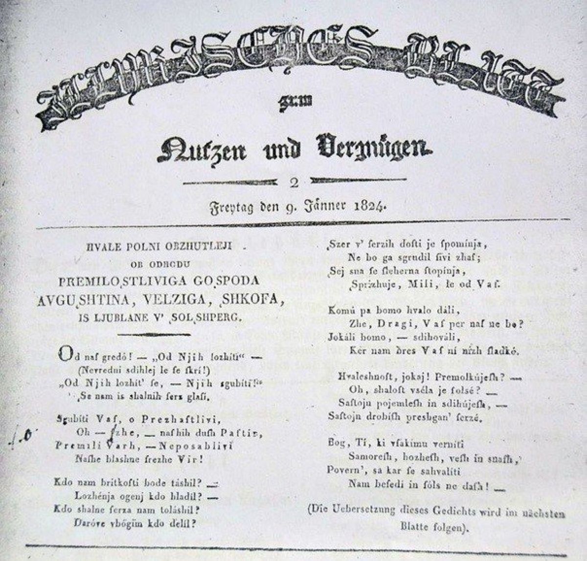 V petek 9. januarja 1824 je bila na naslovni strani objavljena pesem: