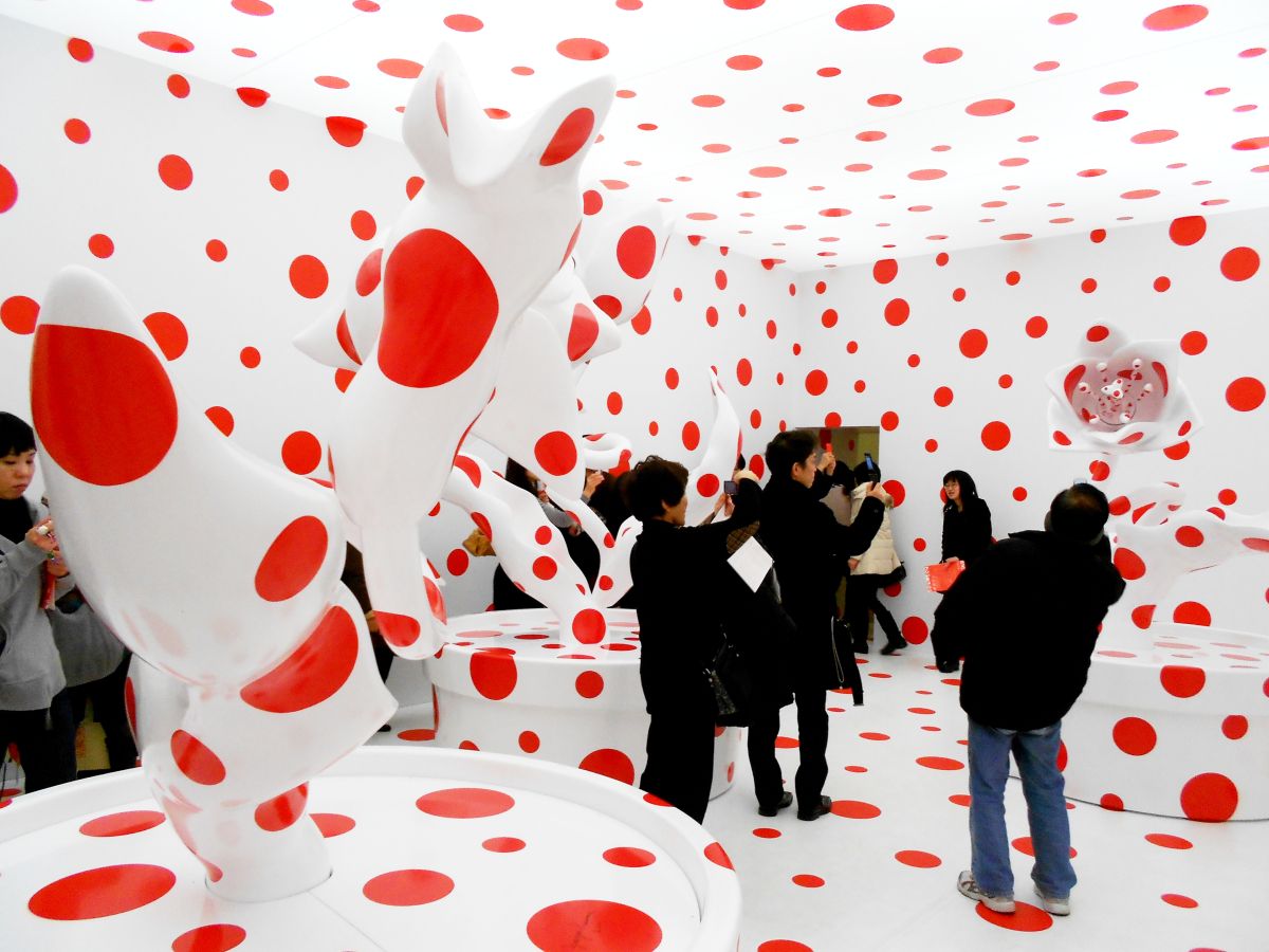 Kusama, rojena leta 1929 v zimskem središču Nagano, je bila v 60. letih med prvimi na Japonskem, ki so prevzemali evropske in ameriške umetniške vzorce. Sama se je navdušila za pop-art. Leta 2006 je prejela nagrado Praemium Imperiale, ki je ena najvišjih japonskih nagrad za umetnike z globalnim vplivom.
