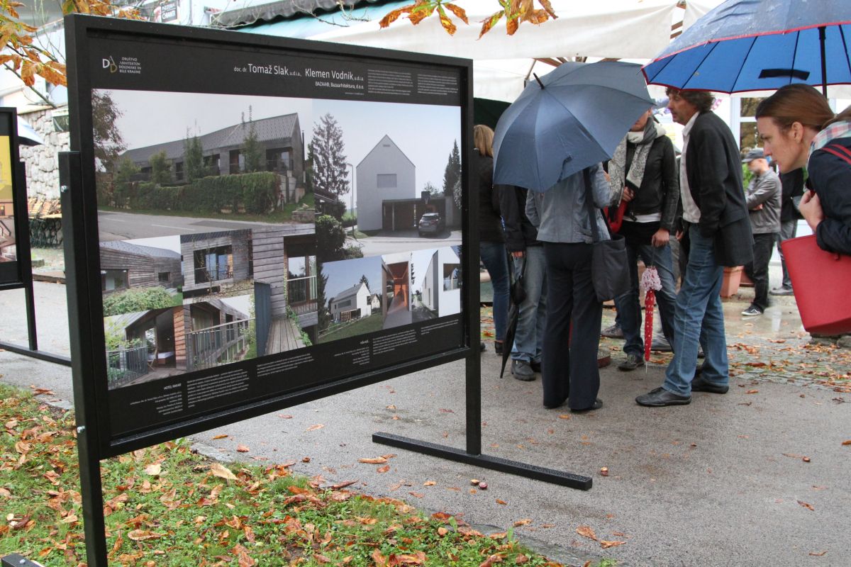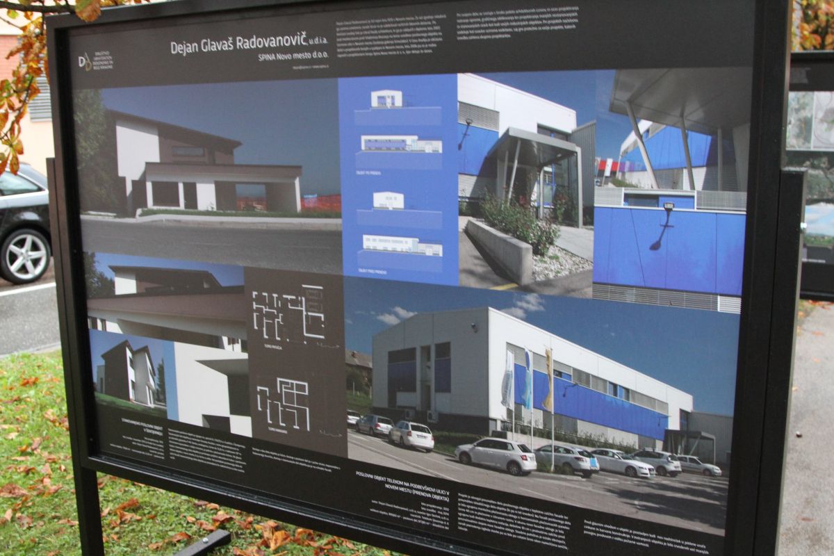 Odkrita arhitektura so poimenovali pregledno razstavo članov Društva arhitektov Dolenjske in Bele krajine, ki so jo včeraj v dežju odprli v drevoredu ob Rozmanovi cesti pod Novim trgom. Kar 29 dolenjskih in belokranjskih arhitektov je del svojega ustvarjanja v zadnjem času predstavilo na panojih, ki se jih bo ob peš poti ob Rozmanovi cesti nedvomno ogledalo bistveno več ljudi, kot bi jih videlo razstavo, ki bi bila postavljena v očem širše javnosti bolj prikriti galeriji.