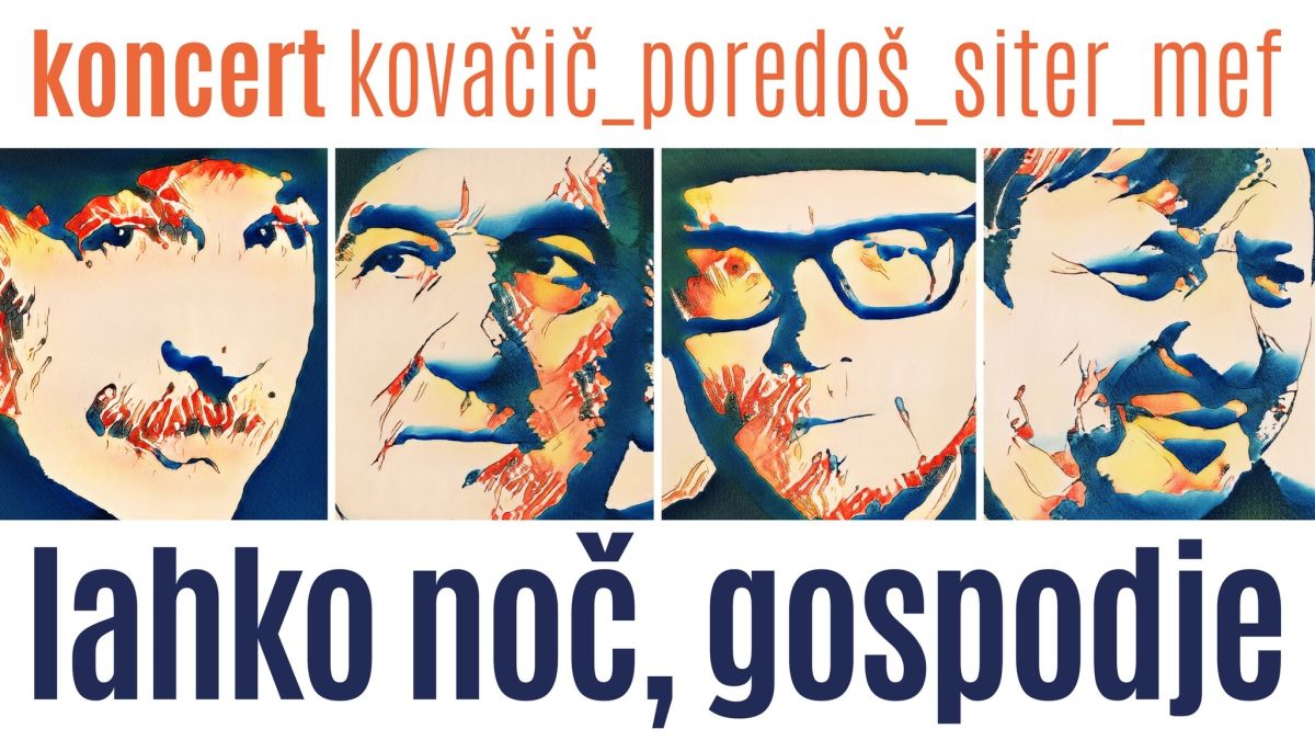 Naziv koncertnega sklopa »Lahko noč, gospodje« bo tudi naslov skupne pesmi, ki jo bodo štirje avtorji pisali kar med turnejo, jo sproti preverjali pri občinstvu in obiskovalce koncertov vključevali v ustvarjalni proces. »Časi so takšni, da moramo stvari početi skupaj!« pozdravljajo rojstvo nove pesmi in štart turneje glasbeniki in pripovedovalci Jani Kovačič, Vlado Poredoš, Primož Siter in Drago Mislej Mef.