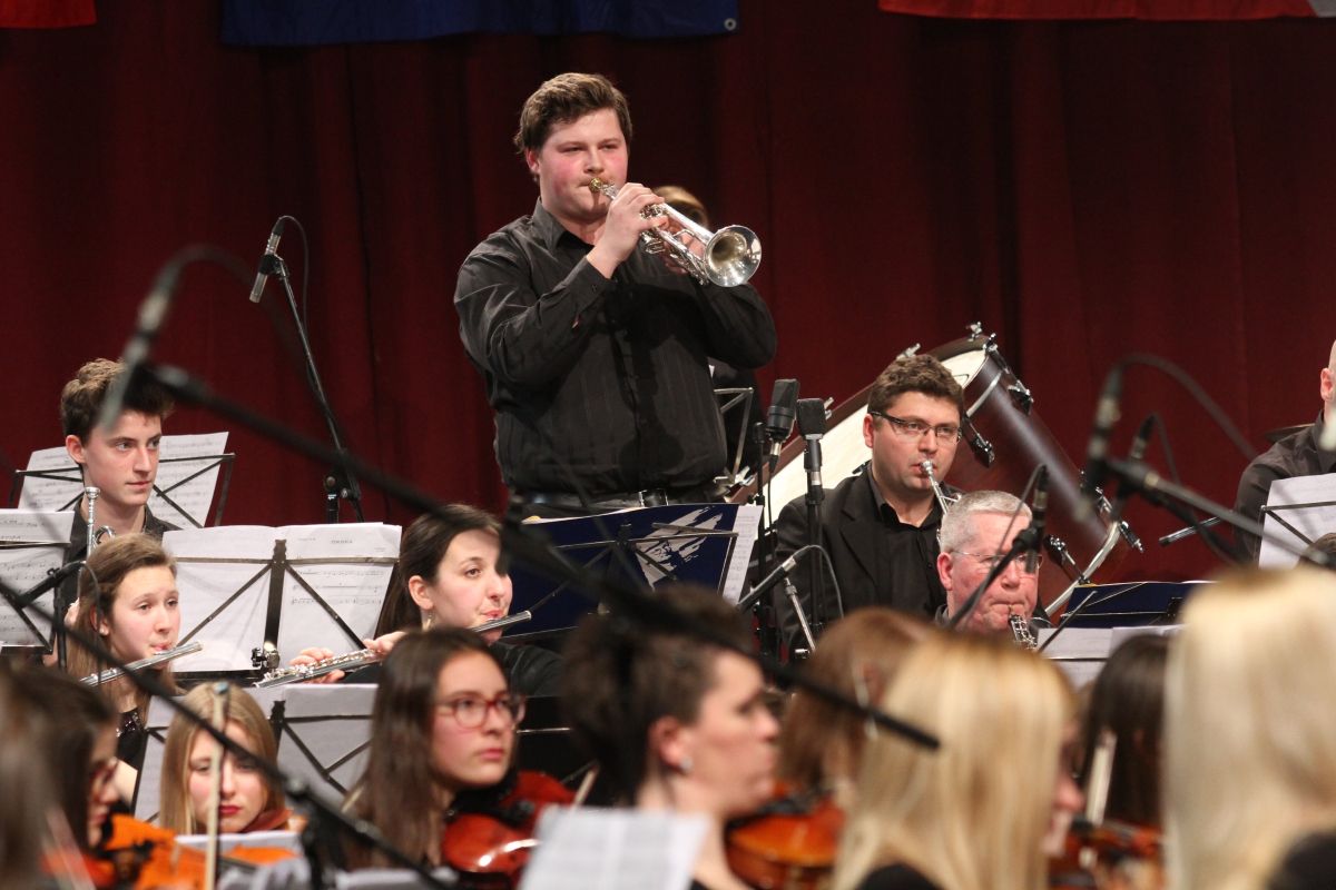 Simfoničnemu orkestru se je tokrat v športni dvorani Marof priključil Big band glasbene šole Marjana Kozine, ki ga je pred dobrim letom začel sestavljati izvrstni jazzovski alt saksofonist Jaka Kopač, ki na šoli poučuje saksofon. Tokrat se je big band simfonikom pridružil pri skladbi, posvečeni legendarnemu jazz trobentaču Louisu Armstrongu, Satchmo, v kateri so se prepletale njegove najbolj znane melodije, in kasneje, ko je izza klavirja stopila pianistka simfoničnega orkestra Ana Čop in odpela nekoliko jazzovsko obarvan solo v legendarnih skladbah zlate dobe slovenske popevke Orion Jurija Robežnika in Zemlja pleše Mojmirja Sepeta.