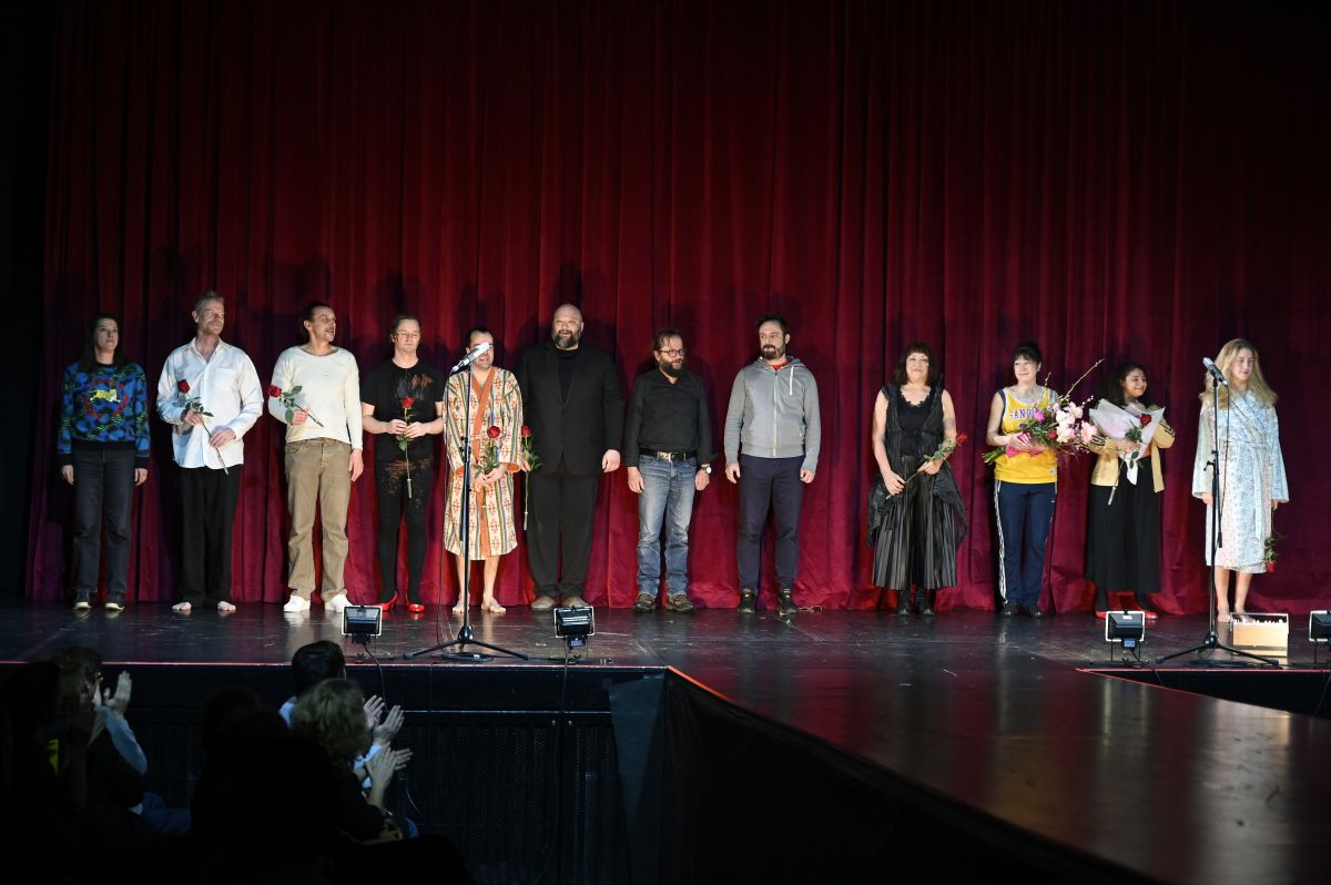 V veliki dvorani Kina Šiške smo obiskali premiero dvodelne predstave Strah in beda Tretjega rajha v režiji Sebastijana Horvata, ki v prvem delu podaja dramsko besedilo Bertolta Brechta, v drugem delu pa ga poskuša odslikavati v sedanjosti.