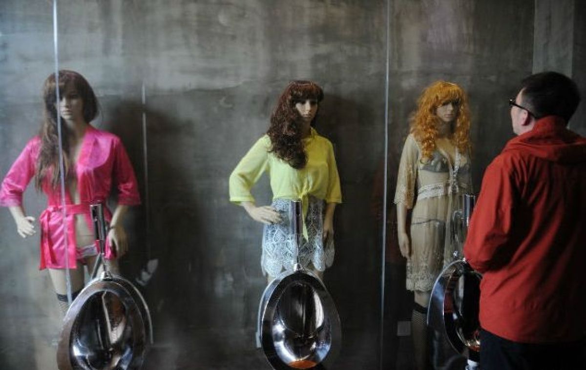 V moškem stranišču ene od restavracij v kitajskem mestu Taiyuan, so za pisoarji postavili ženske lutke. Takšna ureditev moškim omogoča, da med uriniranjem zrejo neposredno v pomanjkljivo oblečene ženske postave.