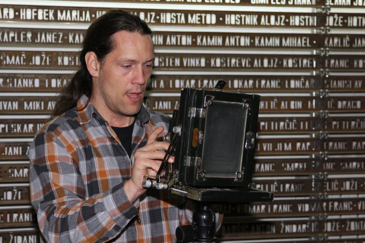 Znani fotograf Borut Peterlin je občinstvu najprej skozi anekdote predstavil izum in pionirske čase fotografije in tudi praktično pokazal, kako so nekdaj fotografirali s tehnologijo mokrega kolodija, po predavanju pa je obiskovalce, ki so to želeli, s tehnologijo fotografiranja na steklo tudi posnel.