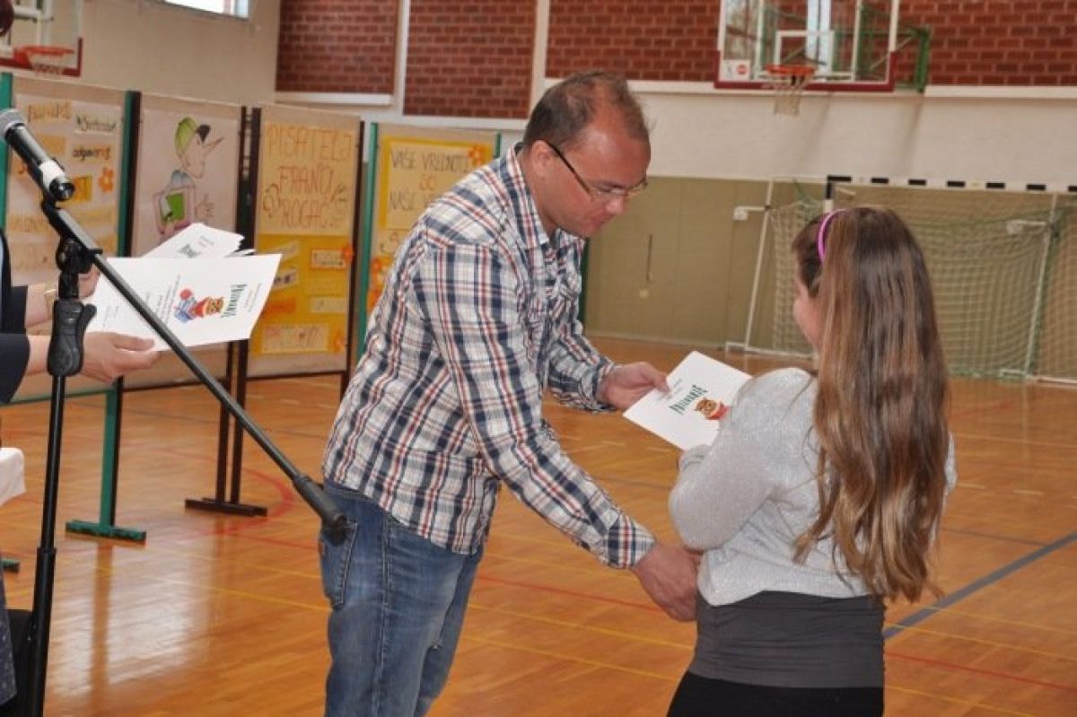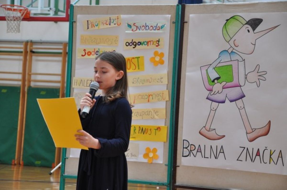 Skupaj smo se zbrali v šolski telovadnici, da bi zaključili še eno uspešno sezono branja za bralno značko. Z nami je bil pravljičar in pisatelj Franci Rogač. Prireditev s podelitvijo bralne značke je zasnovala šolska knjižničarka Marjetka Dragman. Potekala je v dveh delih, posebej za predmetno in razredno stopnjo. Začeli smo s šolsko himno in dvema skladbama v izvedbi mladinskega oziroma otroškega pevskega zbora ter s pesmima, ki sta ju napisali devetošolka Ana Bele in četrtošolka Zoja Maksl. Na prireditvi smo spoznali življenje in delo našega gosta. Na predmetni stopnji je pisatelj Rogač spregovoril o zanimivi in nenavadni življenjski izkušnji, ki jo je predstavil v knjigi Ključ brezdomca. Prebrali smo tudi odlomek iz knjige. Na razredni stopnji je predstavil svoje pravljice. Ob ilustracijah je povedal Pravljico o gozdnem škratu, ki govori o zaščiti narave oziroma gozdov. Povabil je nekaj učencev, dečkov in deklic, ki so se preizkusili v ustvarjanju pravljic. V zaključku pa je skupaj s šolsko knjižničarko našim učencem podelil še priznanja. Bralno značko je uspešno opravilo 284 učencev oziroma 76,5% vseh učencev. Prvošolci so bili najbolj uspešni, saj so jo opravili vsi učenci. Zlatih »značkarjev« je 21, to so učenci, ki so brali za bralno značko vseh devet let. Učencem Romom pa je bilo podeljenih tudi 8 prilagojenih bralnih značk.