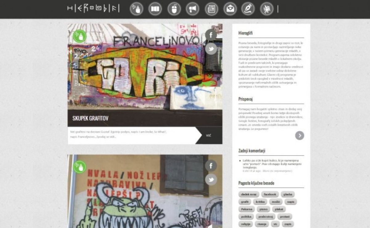 Spletna stran www.hieroglifi.net je del programa Hieroglifi!, na portalu pa bodo zbirali pisano besedo mladih v lokalnem okolju. "Tudi in predvsem takšnih, ki presegajo vsakodnevne pogovore in imajo dodano vrednost ali pa so zaradi svoje vsebine odraz določene kulture ali subkulture," so v društvu zapisali v sporočilu za javnost.