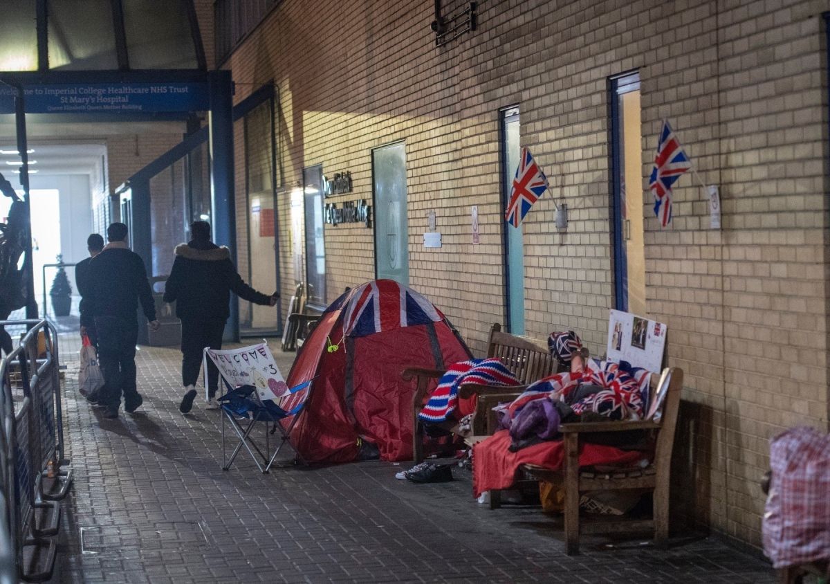 Navdušenci nad monarhijo in mediji v pričakovanju rojstva tretjega otroka para pred bolnišnico čakajo že več dni.