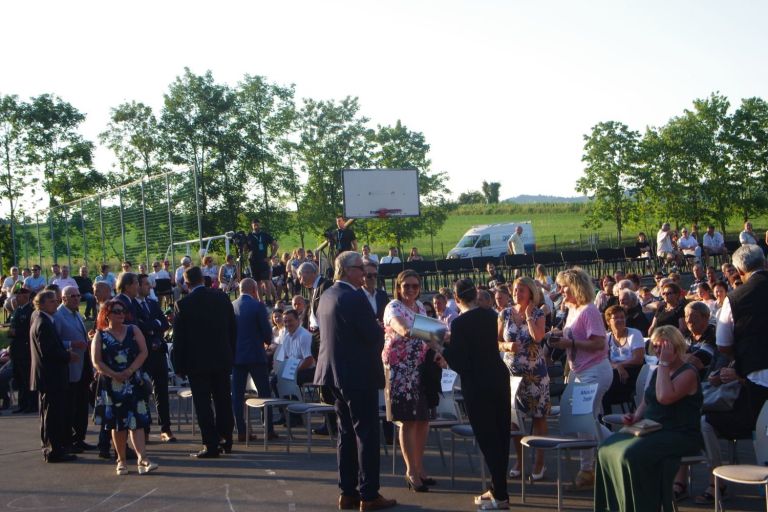 Na prireditvenem prostoru za osnovno šolo je množico zbranih med drugim nagovoril predsednik prve demokratično izvoljene vlade RS Lojze Peterle.