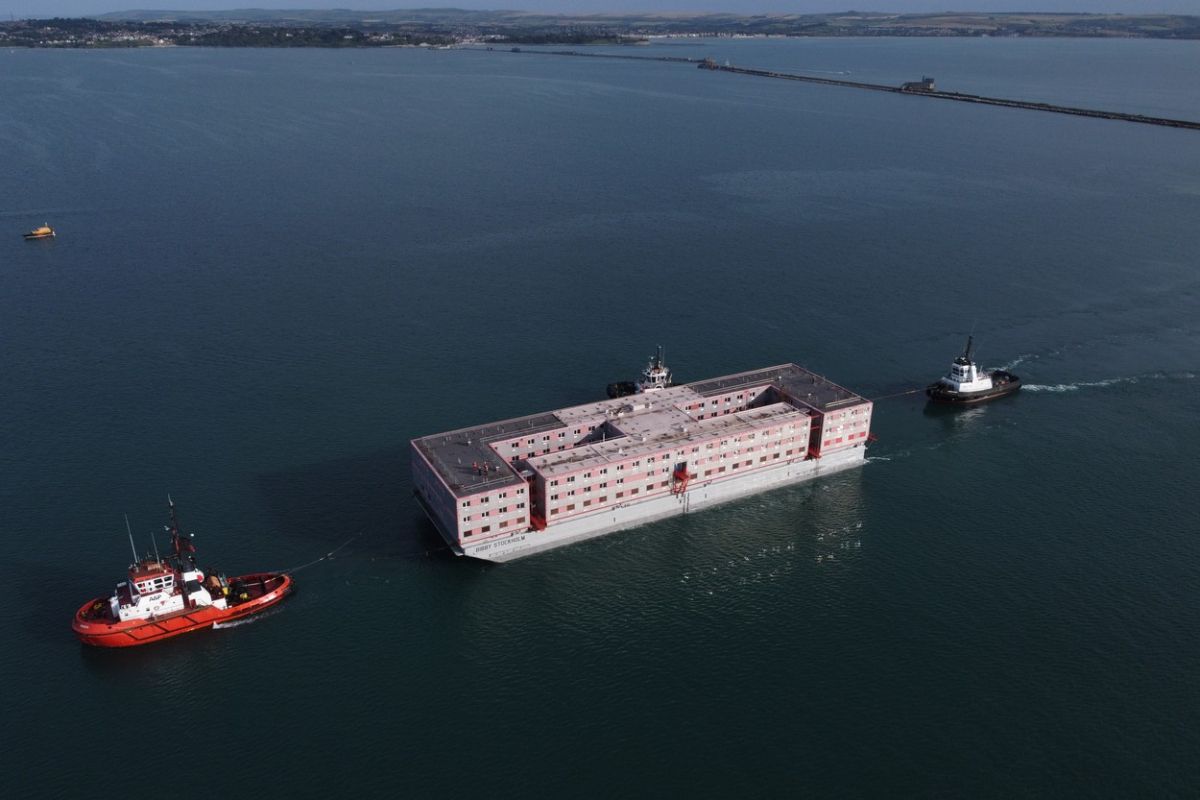 Zakon predvideva nastanitev migrantov na plovilih, kjer so stroški nižji kot v nastanitvah na kopnem. Eno takšnih plovil, barka brez motorja Bibby Stockholm, je danes prispela v pristanišče Portland v grofiji Dorset. Nanjo naj bi še ta mesec nastanili okoli 500 prosilcev za azil.