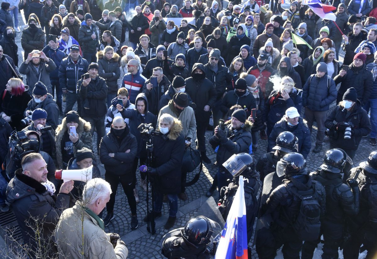 Na ljubljanskem Trgu republike se je včeraj zbralo približno 200 protestnikov, ki se med drugim ne strinjajo s protikoronskimi ukrepi. Protest je varovalo večje število policistov.