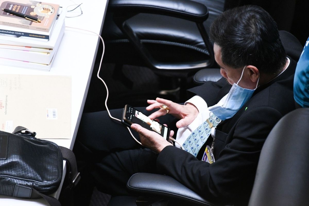 Tajski poslanec Ronnathep Anuwat bi moral včeraj v Bangkoku pozornost posvečati razpravi o proračunu, a se je raje zamotil s pornografijo. Več kot 10 minut si je na svojem telefonu ogledoval fotografije golega dekleta, zaradi česar si je celo snel zaščitno masko.