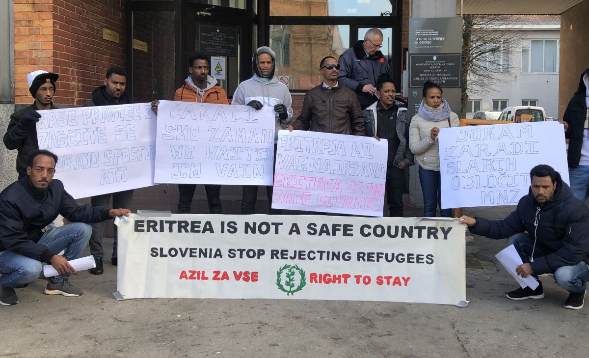 Razlog za današnji protest Eritrejske skupnosti Slovenije in njenih podpornikov pred izpostavo azilnega doma na Kotnikovi v Ljubljani je odločitev notranjega ministrstva, ki je zadnji dan lanskega leta petim prosilcem za azil iz Eritreje zavrnilo prošnje za mednarodno zaščito.