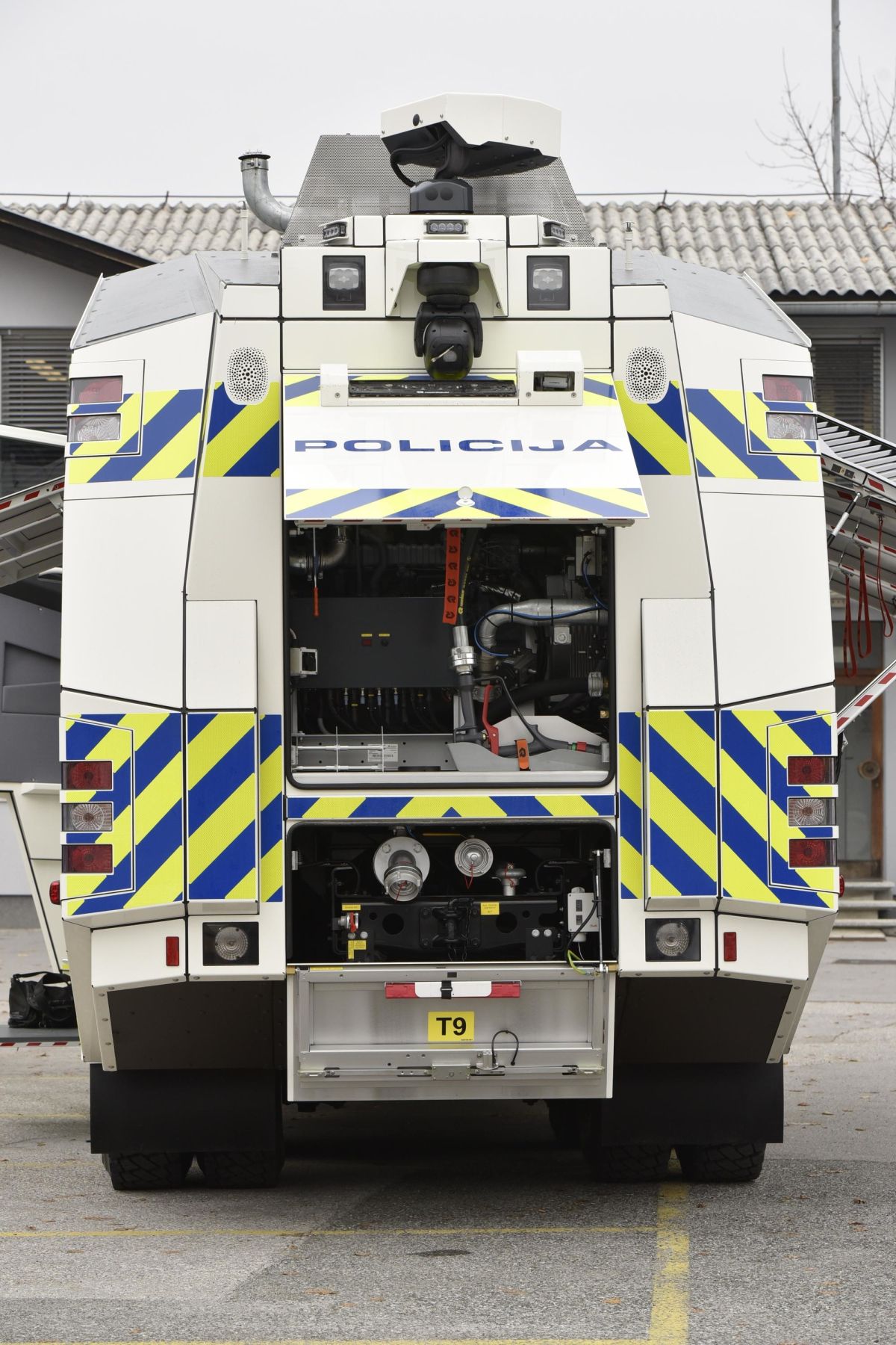 Slovenska policija je danes prevzela novo specializirano vozilo z vodnim topom.