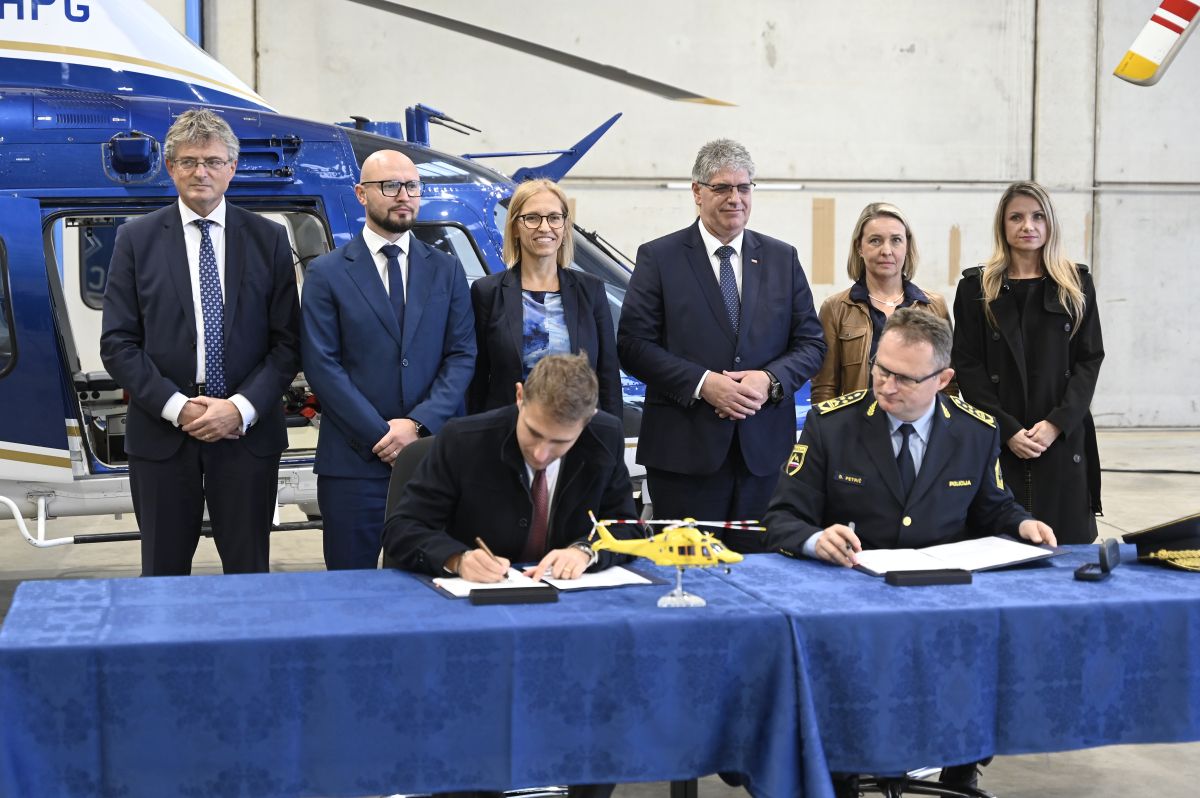 Generalni direktor policije Damjan Petrič je podpisal pogodbo z italijansko družbo Leonardo o nabavi reševanih helikopterjev.