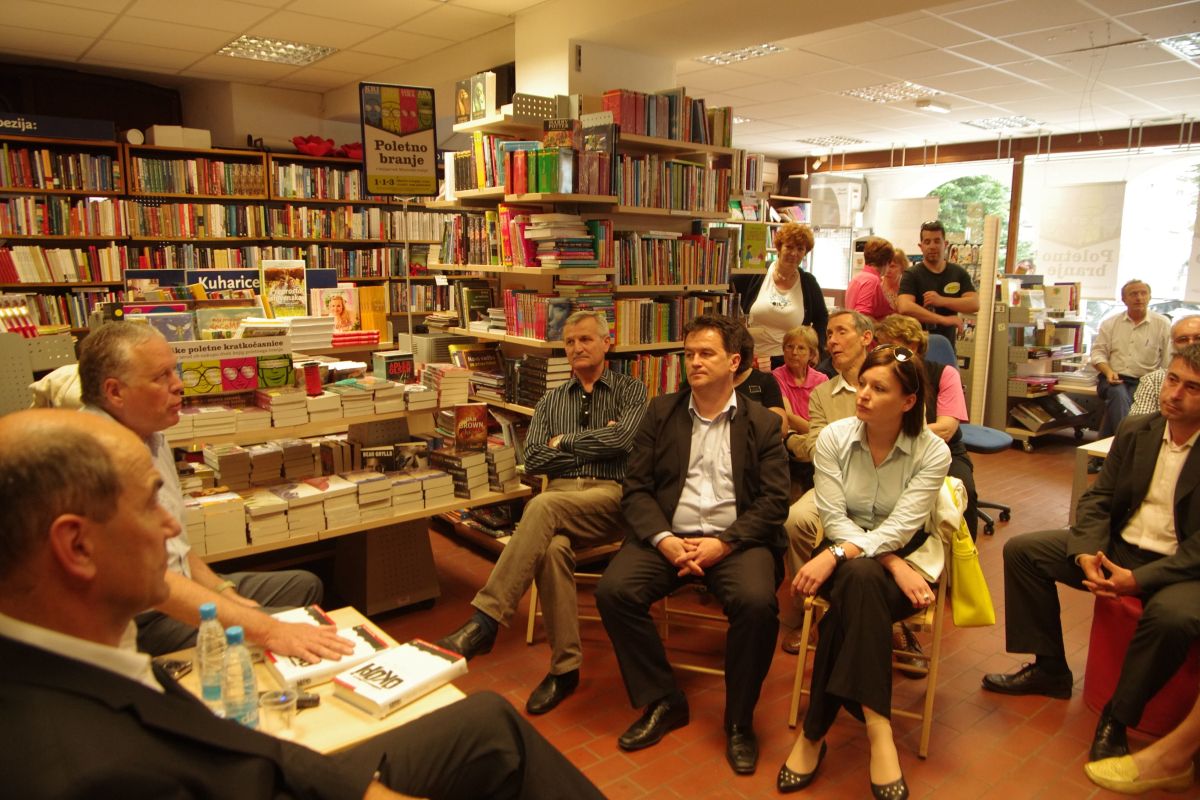 Janez Janša, eden najpomembnejših akterjev slovenske osamosvojitve, prvi obrambni minister v samostojni Sloveniji, nekdanji predsednik vlade in predsednik SDS, je sinoči v Mestni knjigarni Mladinske knjige v Novem mestu predstavil knjigo Okopi - Pot slovenske države 1991 -1994, ki jo je izdala Založba Mladinska knjiga. Z avtorjem se je pogovarjal urednik knjige Tine Logar, prisluhnilo pa jima je številčno občinstvo.