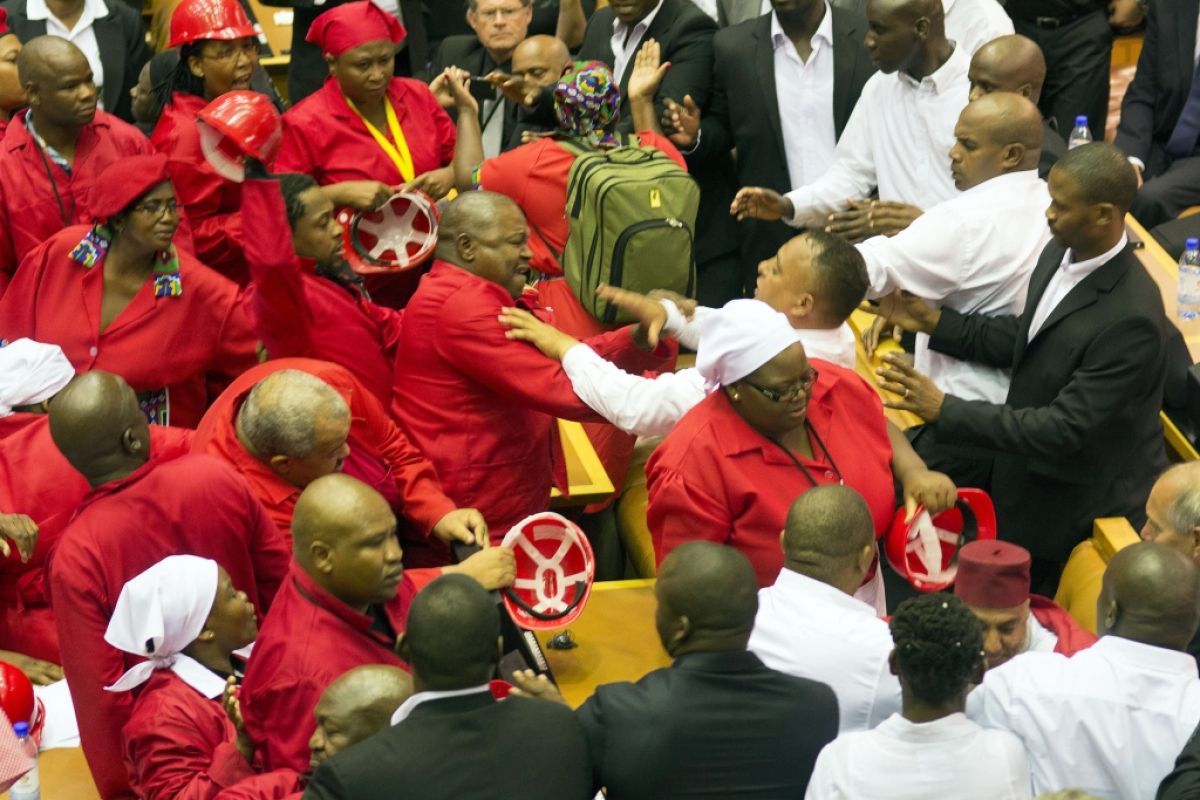 Vodja parlamenta je nato zahteval, da Malema zapusti prostore. Čez nekaj trenutkov so prišli varnostniki in poslance iz manjše opozicijske stranke začeli potiskati proti izhodu. Ti so se uprli, prišlo je do prerivanja in do izmenjave udarcev.